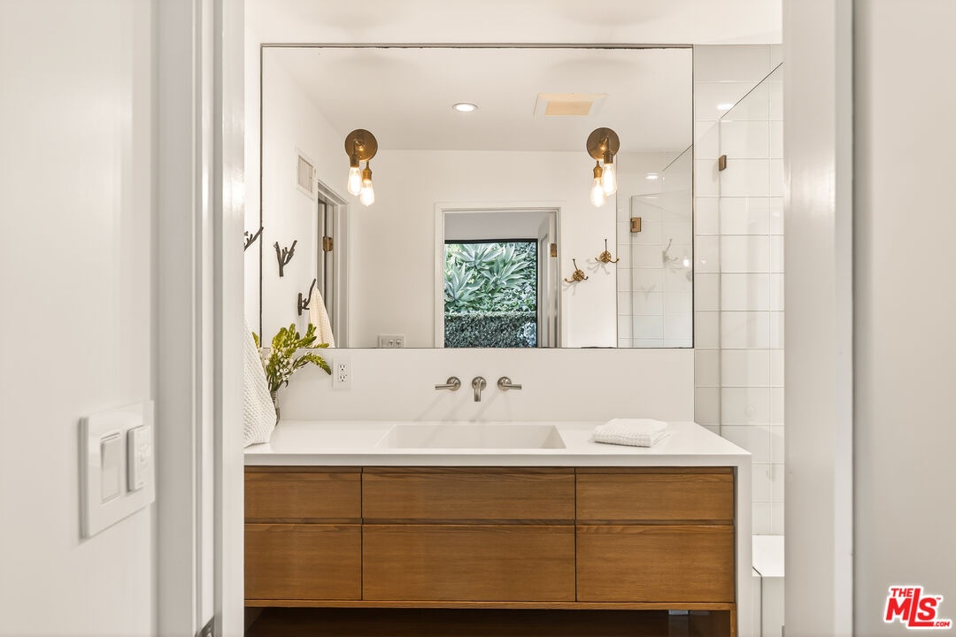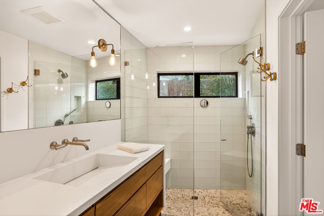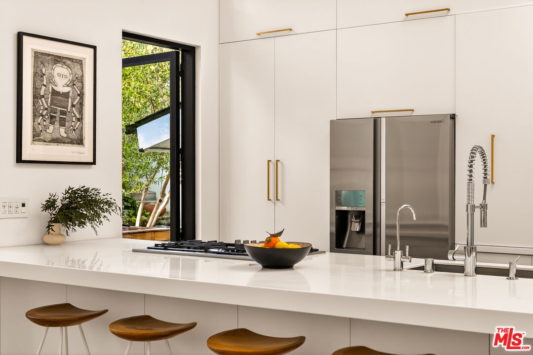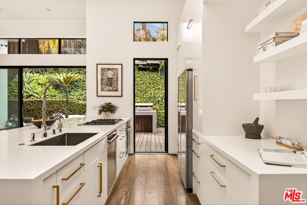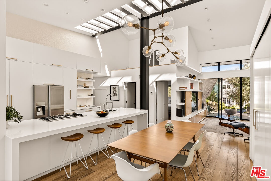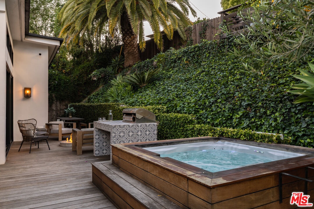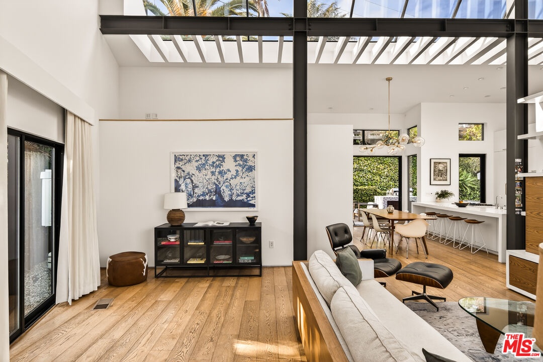 This bespoke architectural residence is defined by soaring 30-foot ceilings, expansive glass, and an extraordinary sense of light, volume, and warmth. Thoughtfully designed with a strong connection to the outdoors, the home pairs striking scale with detail driven craftsmanship and high-end finishes. At the heart of the home, a chef's kitchen anchors the open layout, while oversized skylights and expansive sliding doors create a seamless indoor-outdoor flow. The home's 5 bedroom, 3 bathroom layout is both functional and inspiring, with generous built-in storage perfectly integrated throughout. Outside, multiple inviting spaces include an outdoor lounge with a built-in fire pit, built-in barbecue, jacuzzi, and a hillside deck with sweeping views. Within the Mar Vista School District and set on one of Mar Vista's most sought after streets, this is more than just a beautifully built house - it is a home with heart, soul, and exceptional quality.