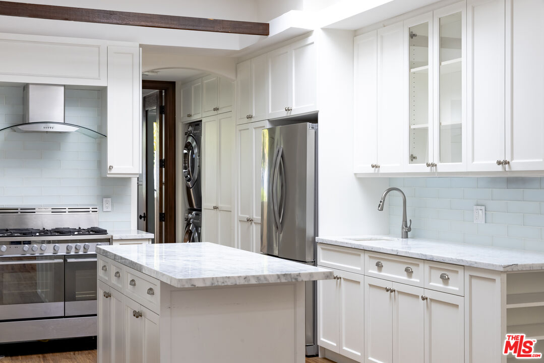 A sophisticated and elegant unit located in the coveted Ocean Park neighborhood of Santa Monica. A spacious one bedroom, one bathroom + den - perfect for an office or guest bedroom. Updated finishes with Italian tile flooring, marble countertops and premium appliances including Fisher Paykel. Large skylights provide an abundance of natural light. Primary bedroom with amazing closet space and French doors that lead out to a private patio. Completely move in ready. 1 car parking. Washer/dryer in unit. A quick walk to Main Street's shops and restaurants. Adjacent to Venice. Countless places to enjoy in the neighborhood!