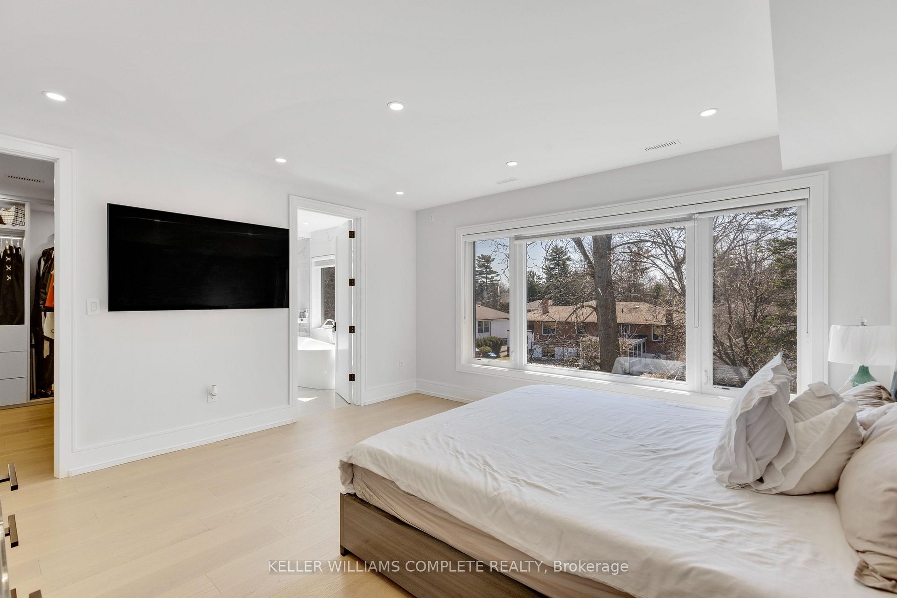 Welcome to 1362 Kenmuir Ave, a custom-built original owner home in prestigious Mineola, Mississauga, offering approximately 3,973 sq ft of elegant living space. The main floor features high ceilings, large windows, hardwood throughout, a private office, powder room, fireplace, and an open-concept layout centered around a chef-inspired kitchen with top-of-the-line appliances and walkout to the deck and backyard. Upstairs offers 4 spacious bedrooms, each with its own ensuite and walk-in or built-in closet, plus convenient second-floor laundry. The finished walkout lower level features high ceilings, built-in bar, wine wall, second laundry room, utility room, and excellent space for entertaining or in-law potential. Complete with built-in speakers, pot lights throughout, double garage, and parking for 6 cars.