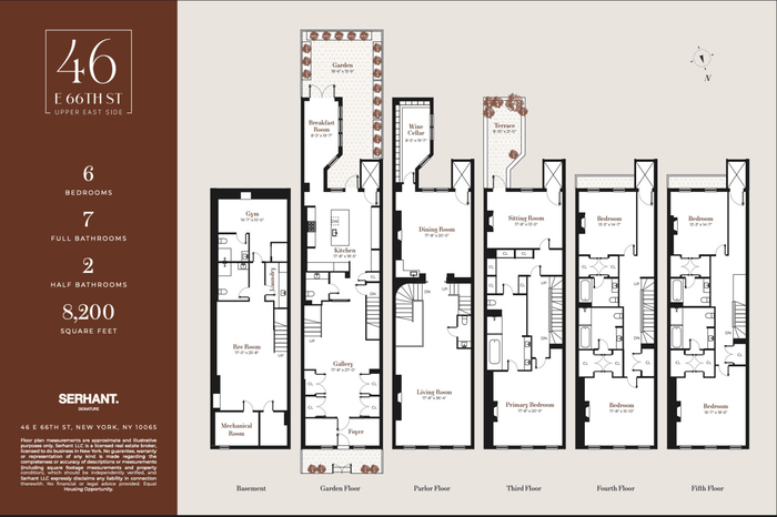 This exceptional over 20-foot-wide townhouse is discreetly positioned on one of Manhattan's most prestigious blocks, between Madison and Park Avenues on the Upper East Side. Spanning approximately 8,200 square feet across six meticulously designed floors, the residence offers six bedrooms, seven full bathrooms, and two powder rooms.
