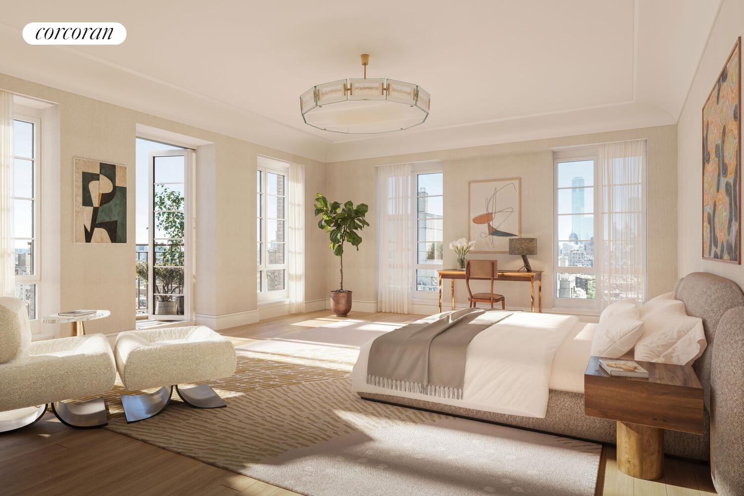 Elegant decorative Juliet balconies, detailed setbacks decorating the brick and limestone facade, and jack arched windows create a sense of townhouse living perched on top of this Robert A.M. Stern Architects icon. Rarely does a residence of this scale, pedigree, and location come to market-an heirloom-quality Fifth Avenue home in the heart of Greenwich Village.