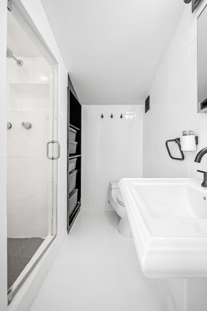 Upstairs, the spacious primary bedroom opens directly onto a private, landscaped roof deck. Your own tranquil oasis above the city. Perfect for entertaining or quiet relaxation, this outdoor space offers a rare sense of privacy paired with open city views.