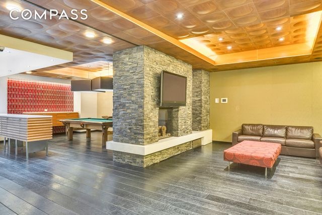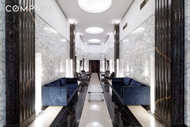 99 John Deco Lofts is a sought-after residence with full-service amenities including a 24-hour doorman, luxury fitness room, children’s playroom, residents’ lounge with pool table, large outdoor Zen garden with grills, wrap-around roof deck with cabanas, and city and river views. Separate indoor bike storage, storage cages, and garage parking are available for an additional fee.