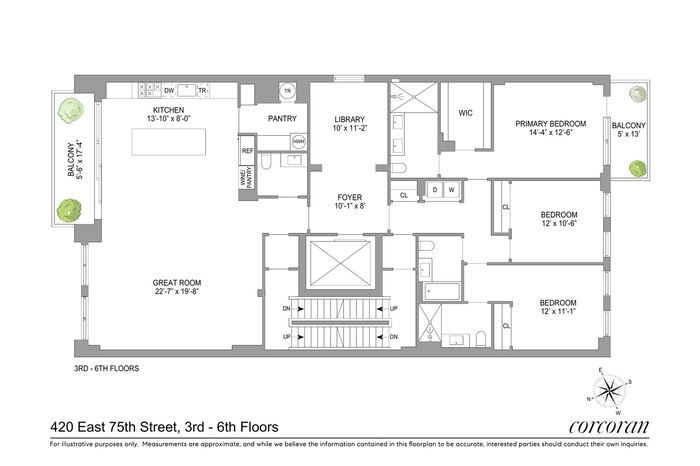 The elevator opens directly into a gracious foyer, setting the tone for a thoughtfully laid-out residence with three bedrooms, three-and-a-half bathrooms, a windowed library, and a spectacular great room perfect for entertaining.