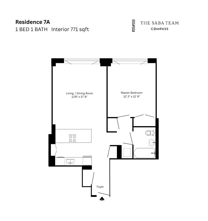 A well-proportioned 771-square-foot one-bedroom featuring a gracious foyer, oversized coat closet, and oversized windows in your new expansive living and bedroom spaces.