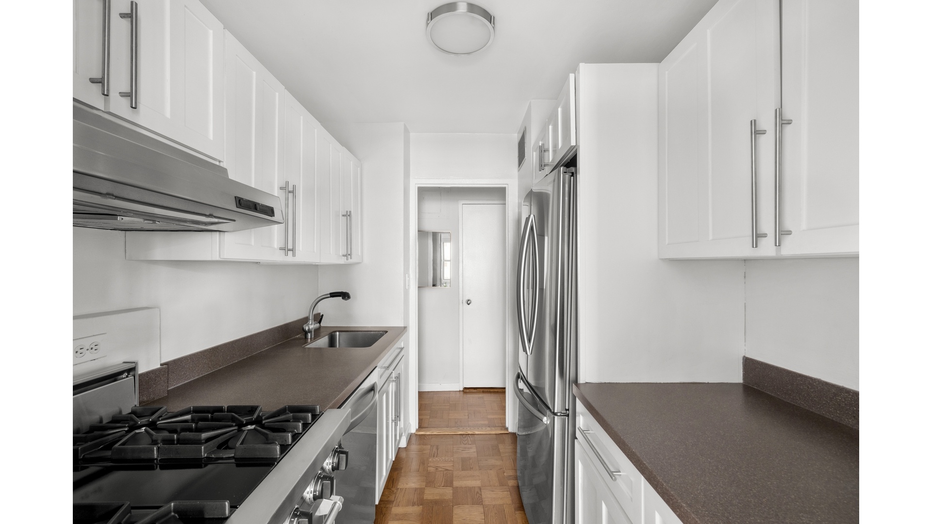 The renovated chef's kitchen features stainless steel appliances, gorgeous stone countertops and great storage. The primary bedroom easily accommodates a king-sized bed, room for additional furniture and a large walk-in closet. The updated bathroom features Carrera marble, subway tiles, and a mosaic floor, and a glass door shower.