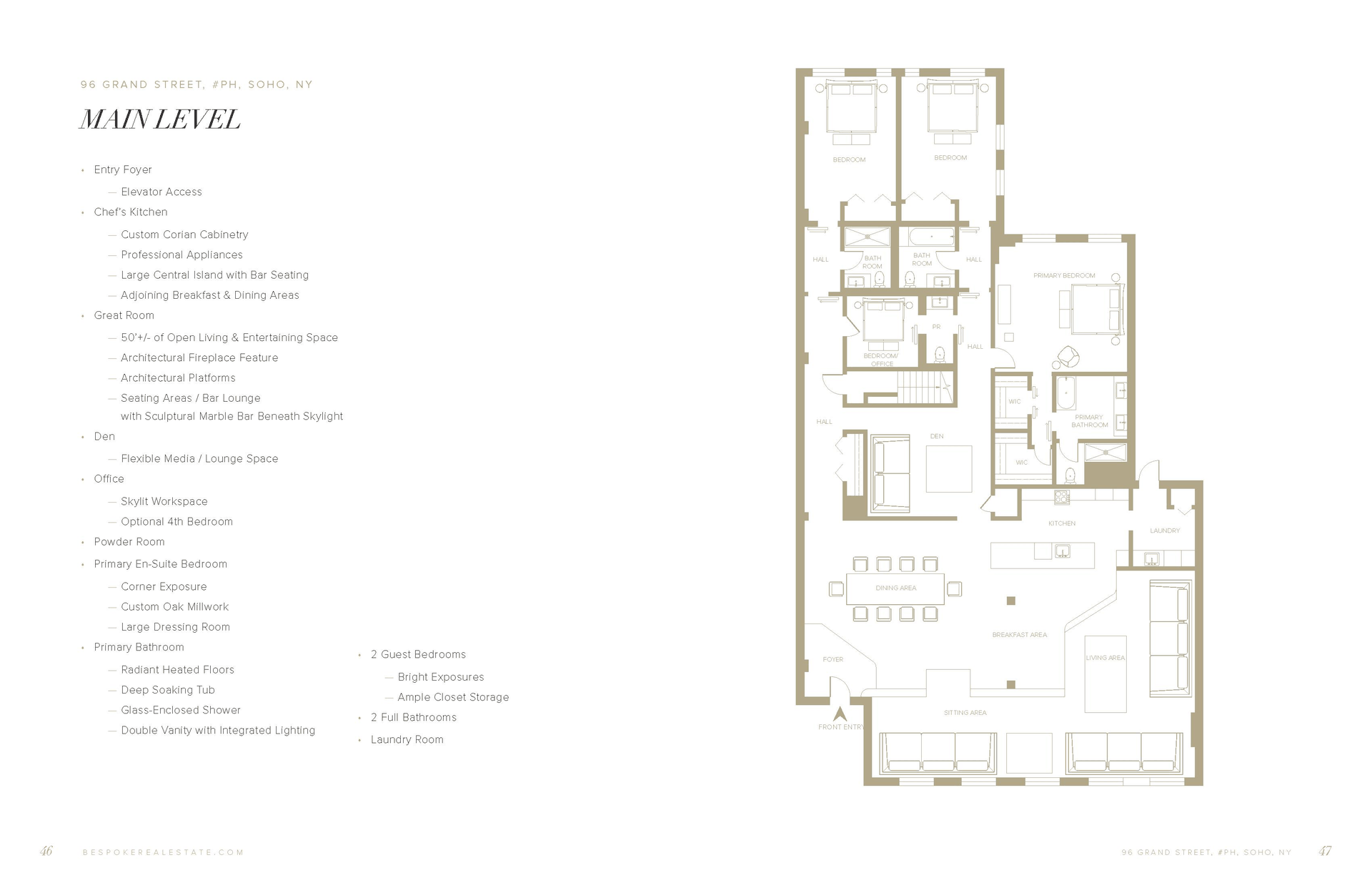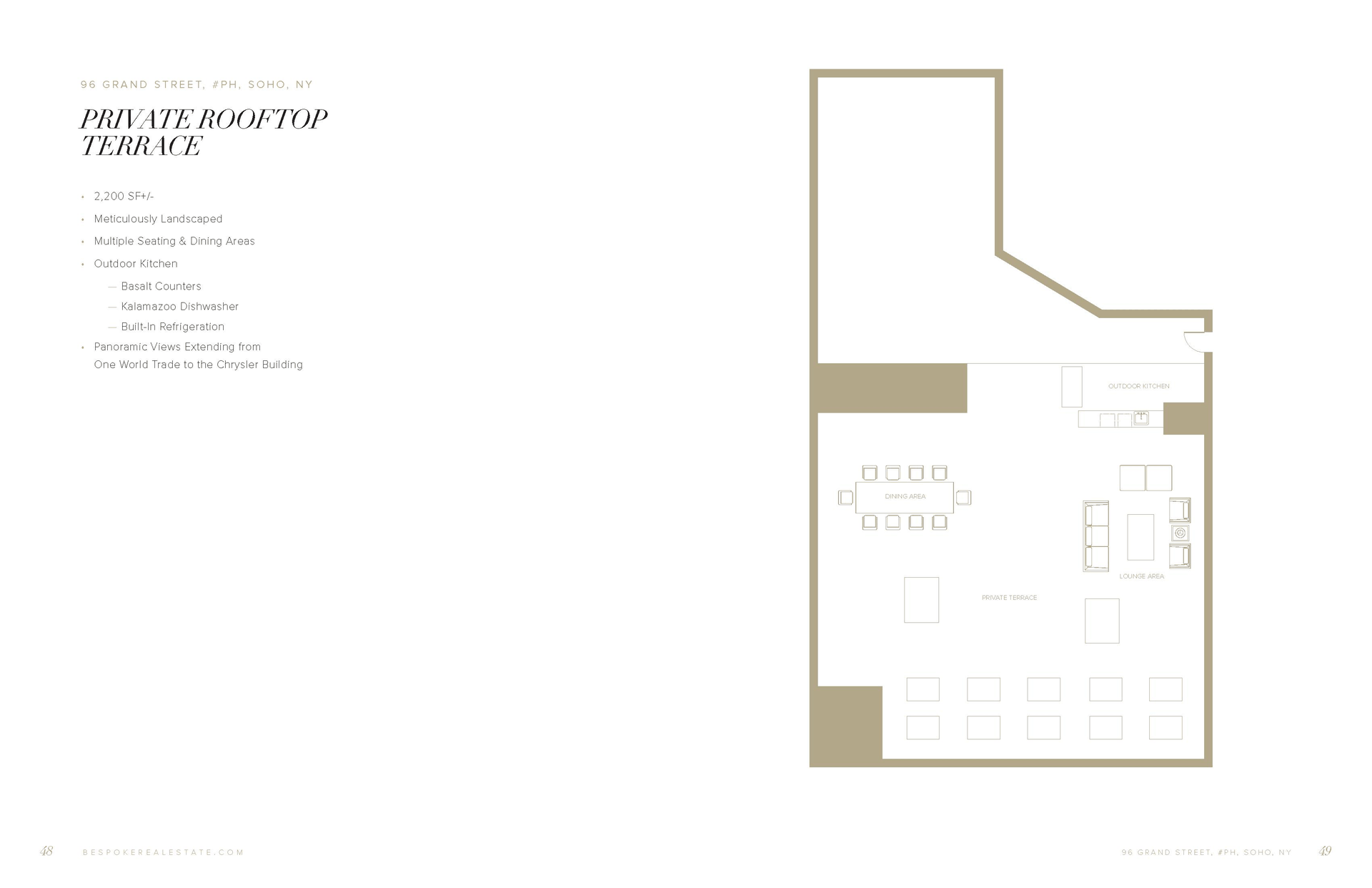 SoHo Grand PenthouseSkyline Living Like Never BeforeThe penthouse at 96 Grand Street is a rare full floor residence offering 3, 750 SF of interior space with 3 bedrooms and 3 ...