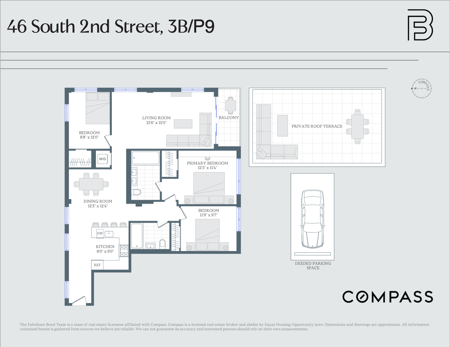 Residence 3B, Parking Spot 9 46 South 2nd Street 3 bedrooms, 2 baths, a 465 square foot private rooftop cabana, a deeded parking space, and a 25 year tax abatement ...