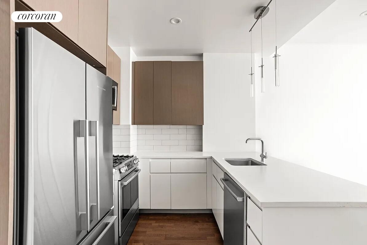 - Modern kitchen with Fisher & Paykel and Bosch appliances, quartz countertops, and glass backsplash