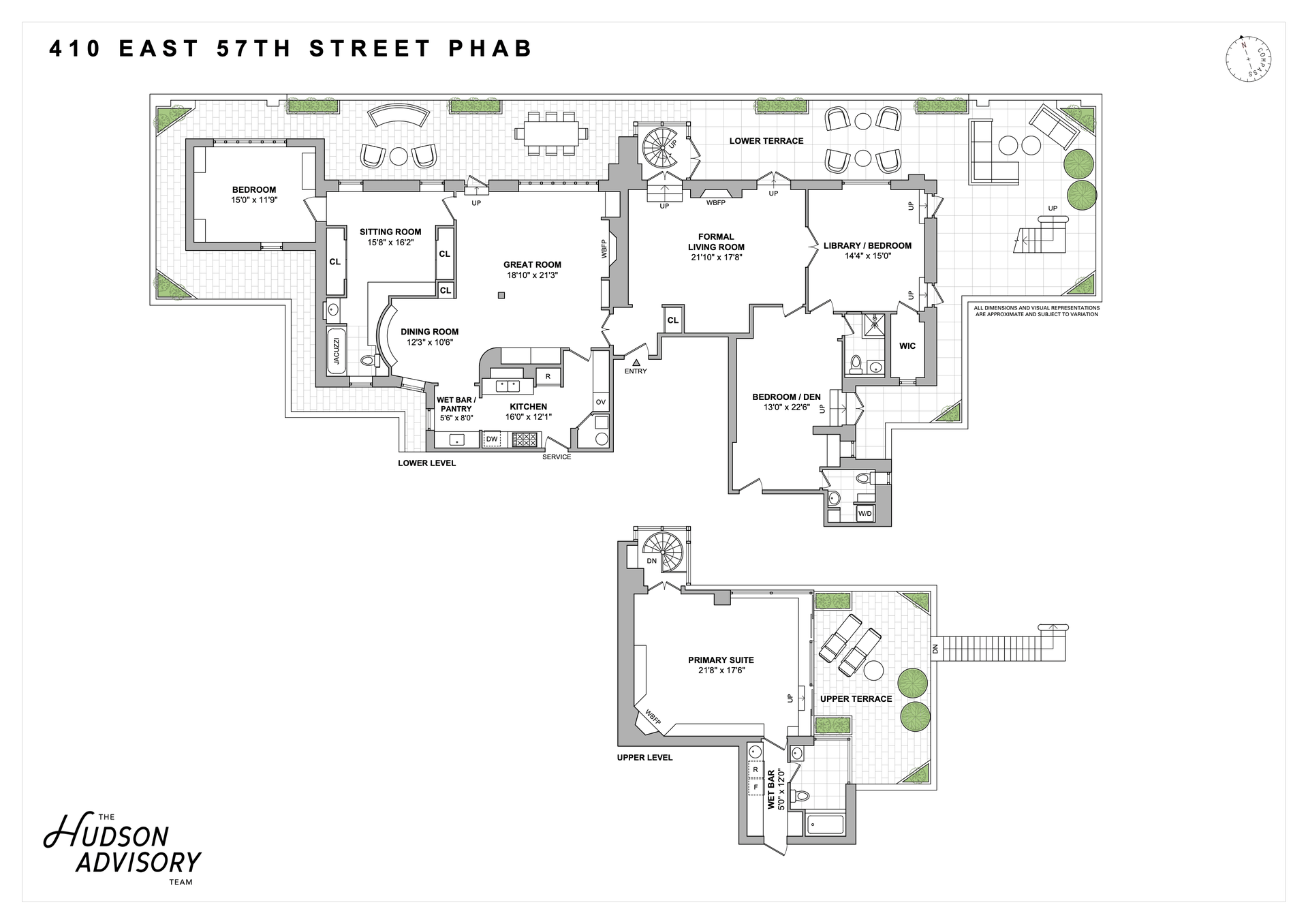 Perched atop 410 East 57th Street and spanning approximately 3,053 interior square feet, this expansive home is encircled by nearly 2,150 square feet of private outdoor space, offering a seamless integration of interior and exterior living. With open exposures to the east, north, and west, the residence is filled with natural light throughout the day and offers striking skyline views at night.