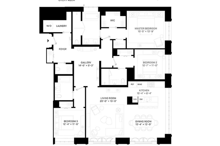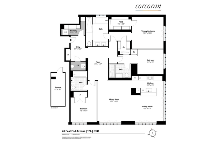 Residence 12A presents a half-floor, three bedroom, three and one half bath home. As you step into the gracious foyer, East River views welcome you, accompanied by abundant natural light streaming in through the oversized casement windows. This exceptional residence spans 2,230 square feet, boasting 10-foot ceilings, expansive oversized casement windows, Juliet balconies, custom moldings, 8-foot doorways, and white oak herringbone flooring throughout the main living areas.