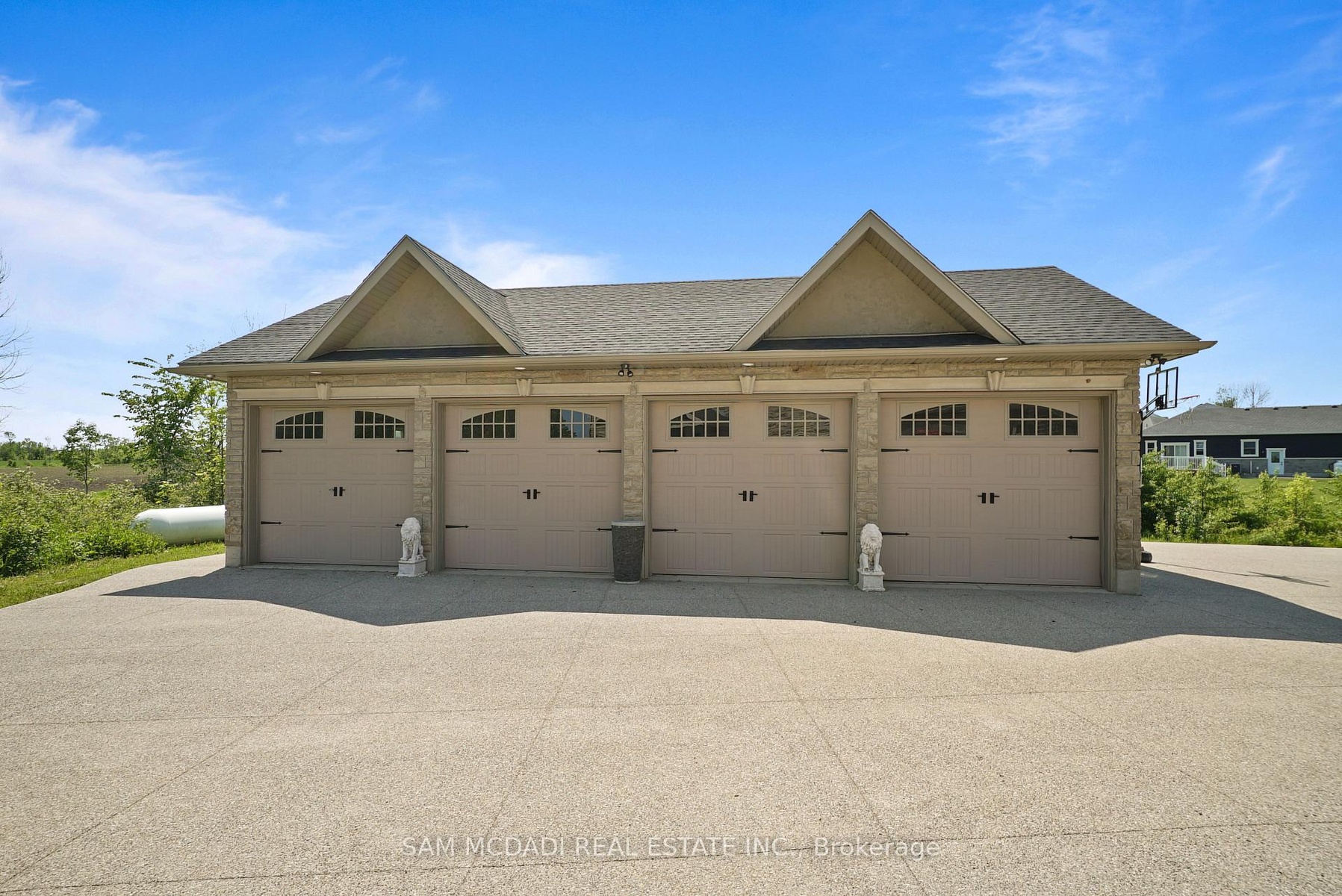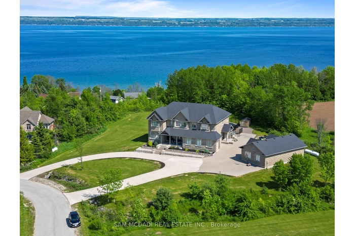 A timeless blend of design and craftsmanship, this custom-built home offers over 6500 sq ft of living space and sits on a premium lot of almost 2 acres with spectacular views overlooking Georgian Bay. Upon entering the grand foyer, you are immediately greeted by a thoughtfully designed main floor featuring generously sized principal rooms, ideal for both everyday living and entertaining. The chef-inspired kitchen boasts an oversized centre island, an inviting eat-in area, ample counter and storage space, premium appliances, and a butler's pantry that seamlessly flows into the formal dining room for large family gatherings. The living room is the showstopper of the main floor with its 19-foot ceiling and floor-to-ceiling windows, which offer views overlooking the inground 100,000 liter saltwater pool. Upstairs, the expansive primary suite overlooks the mature backyard and includes a cozy gas fireplace, his-and-her walk-in closet, and a spa-inspired ensuite. Three additional well-appointed bedrooms, each with ample closet space and two of them with spa-like ensuites, ensuring comfort and privacy for every family member. The upstairs also boasts a lounge area, ideal for unwinding after a long day. The finished basement, with a separate entrance, includes a theatre room, 2 & 3 pc washrooms, and plenty of recreation space for the growing family. The recreation room has a wall of glass doors that open to the expansive, private backyard, which features endless possibilities for outdoor living. 6 garages, 2 attached,4 separate with 2 lifts, 4 fireplaces,1.5 year old furnaces (2) and a/c units (2), roof is 6 years old with 235km shingles for windstorms, in-floor basement heating. This home has it all