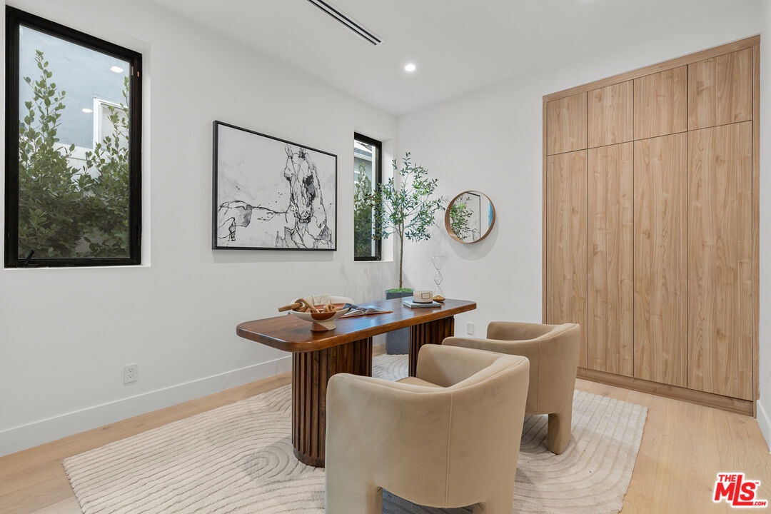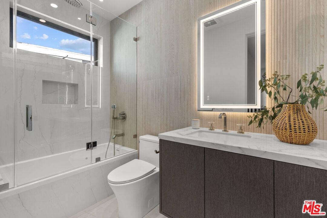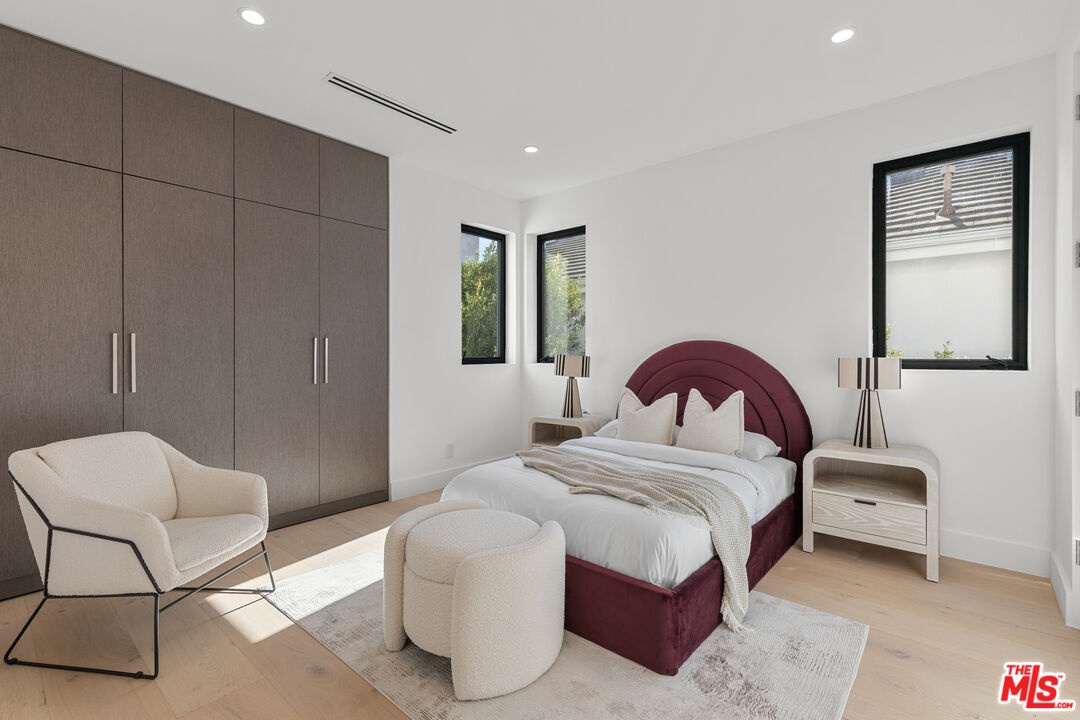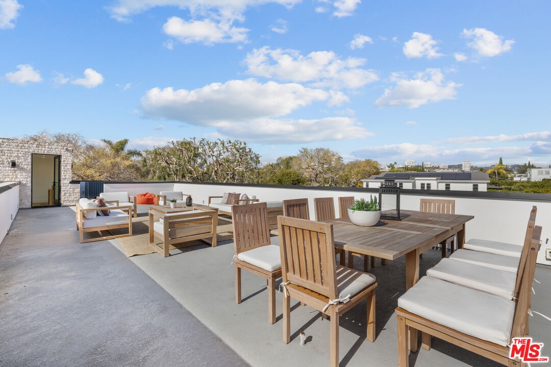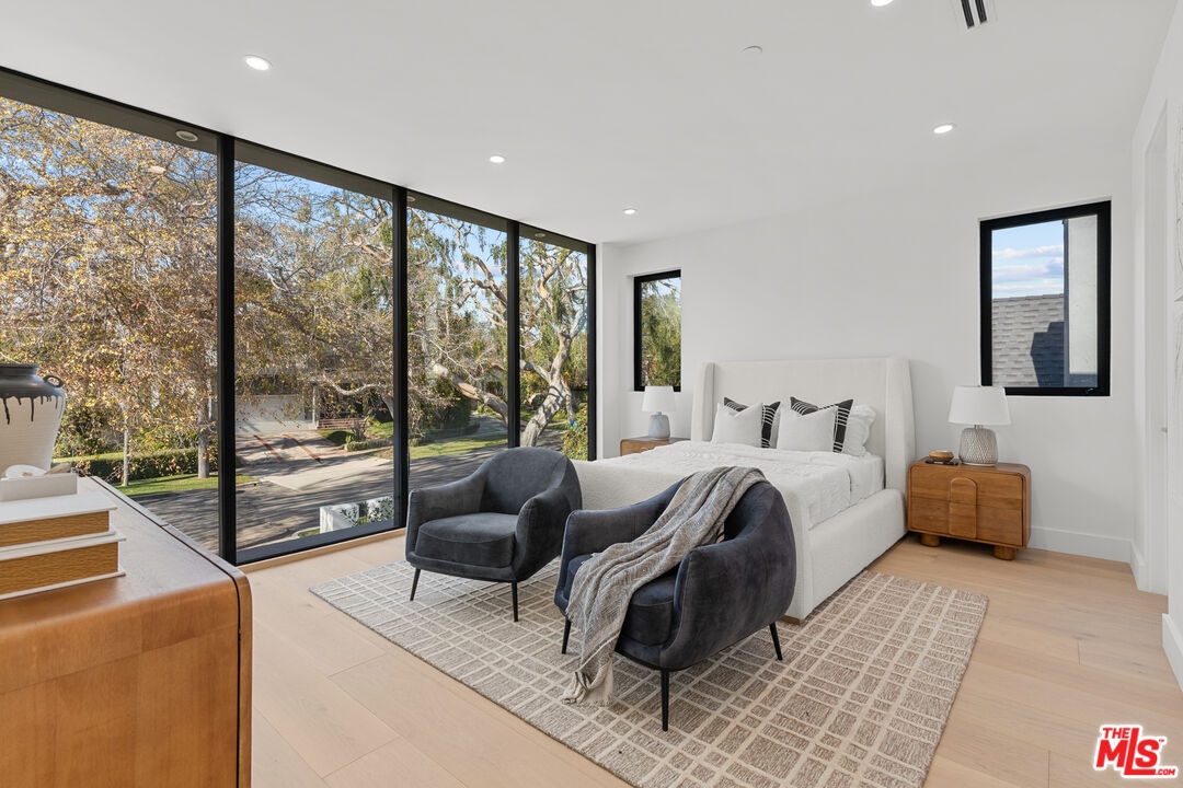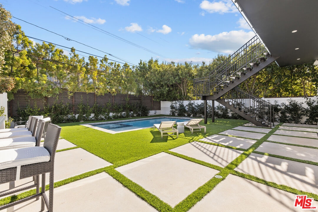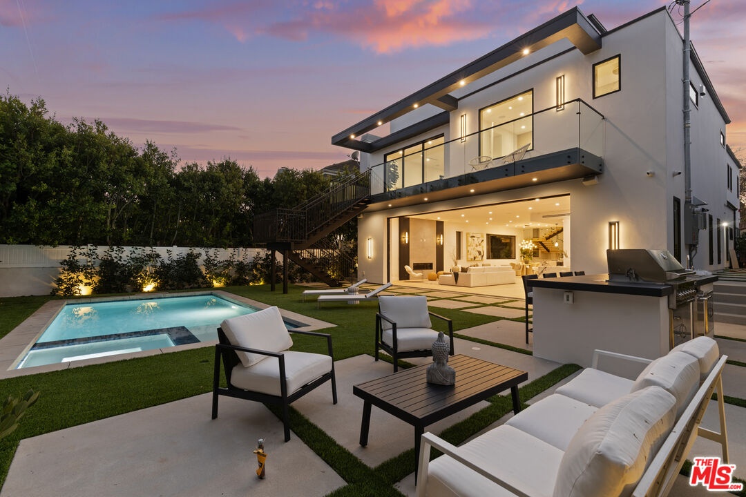 Introducing a brand-new architectural masterpiece that embodies sophistication and cutting-edge design. This 5-bedroom, 5.5-bath residence blends refined craftsmanship with the ultimate in modern convenience each bedroom is en suite, offering private comfort and style throughout. One spacious en suite bedroom is conveniently located downstairs, along with a sleek powder room ideal for guests. The home's main level features open-concept living and dining spaces with seamless indoor-outdoor flow, anchored by wide-plank engineered hardwood floors and an elegant fireplace. The chef's kitchen is outfitted with porcelain countertops and a full suite of Miele appliances including dual ovens, an 8-burner range, built-in coffee maker, wine cooler, and ice maker complemented by a separate pantry with additional storage and appliances. Smart home technology is seamlessly integrated throughout, featuring Control4 automation, Lutron lighting, Sonos audio across three zones, and Nest climate control. The home is equipped with a comprehensive security system, including high-definition cameras, along with fully paid-off solar panels for energy efficiency. Fleetwood doors and windows frame the interiors with natural light and connect to a private backyard retreat featuring a pool and spa with blue porcelain tile detailing, and a custom outdoor kitchen with built-in BBQ, fridge, and prep space. A show stopping rooftop deck crowns the home an entertainer's dream with panoramic city views, pre-installed wiring for outdoor camera/speaker systems and hookups for a gas BBQ and fire pit. Perfectly positioned near Century City, Westwood, and Beverly Hills, this residence offers effortless access to world-class shopping, dining, and entertainment!