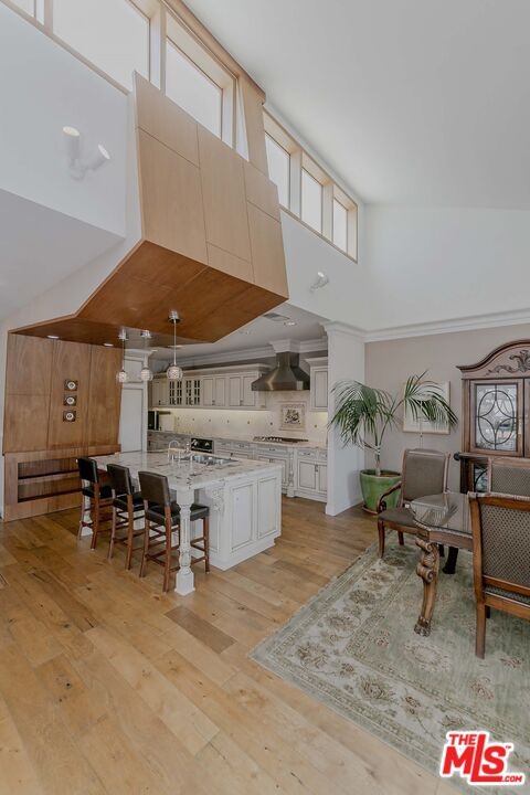 Experience over 3,300 square feet of refined elegance in this 2-bedroom, 3-bath penthouse in the heart of Hancock Park. This stunning residence features soaring ceilings, expansive double pane windows, and an open-concept layout that blends comfort with sophistication. on-site security guard. Viking appliances, a large marble island, and custom cabinetry. The spacious dining and living areas are anchored by a grand chandelier and a beautiful fireplace, perfect for both entertaining and everyday living. Each bedroom offers a private balcony with sweeping city views, while the living room opens to its own outdoor space, creating seamless indoor-outdoor living. The generous primary suite boasts a spa-like bathroom and abundant closet space. Additional highlights include hardwood floors throughout, three full balconies, and elegant finishes in every room. Situated in a prestigious building on Wilshire Blvd, you'll enjoy proximity to premier dining, shopping, and cultural attractions.