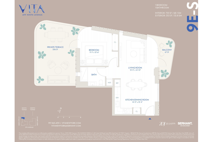 An elegant blend of cutting-edge technology and rich organic tones defines this brand new 1-bedroom, 1-bathroom corner condo with a huge private terrace, a charming balcony, and northern, southern, and western light at VITA, a transformative building noted for its architectural excellence and award-winning sustainability.