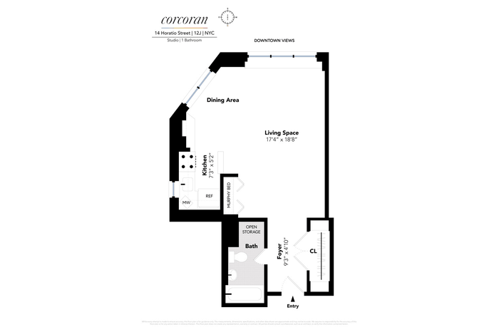 14 Horatio Street is a well-maintained, full-service prewar cooperative with a full-time doorman, live-in superintendent, laundry room, bike storage, and a beautifully landscaped roof deck with panoramic city views. The building is pet-friendly, subject to board approval.