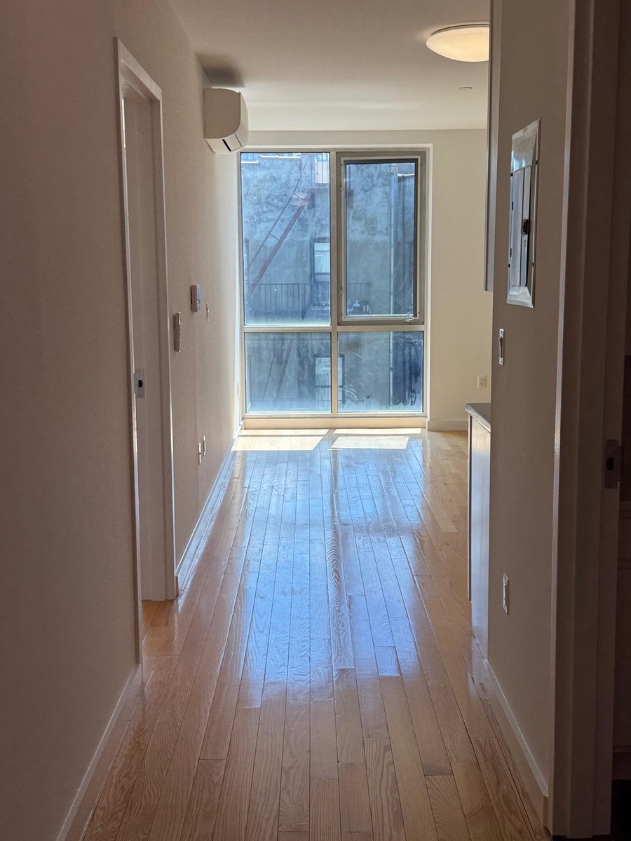 The apartment features a beautiful open kitchen with Caesarstone Countertops, a Marble Backsplash, Stainless Steel Appliances, a Dishwasher, Inducto vented stove, and an abundance of Cabinets. The apartment boasts a spa like vented bath with a lovely tiled stall shower with a glass door. The apartment features it's own washer/dryer combo unit. The unit is South facing and there are Floor to Ceiling windows that allows in an abundance of natural light. Each unit has individual stand alone hot water heater, and a Mini Split Wall Mounted Daiken AC/Heating HVAC System with remotes. The unit is a 1 bedroom with a Bonus Room (could be a home office, dining room, walk in closet...)