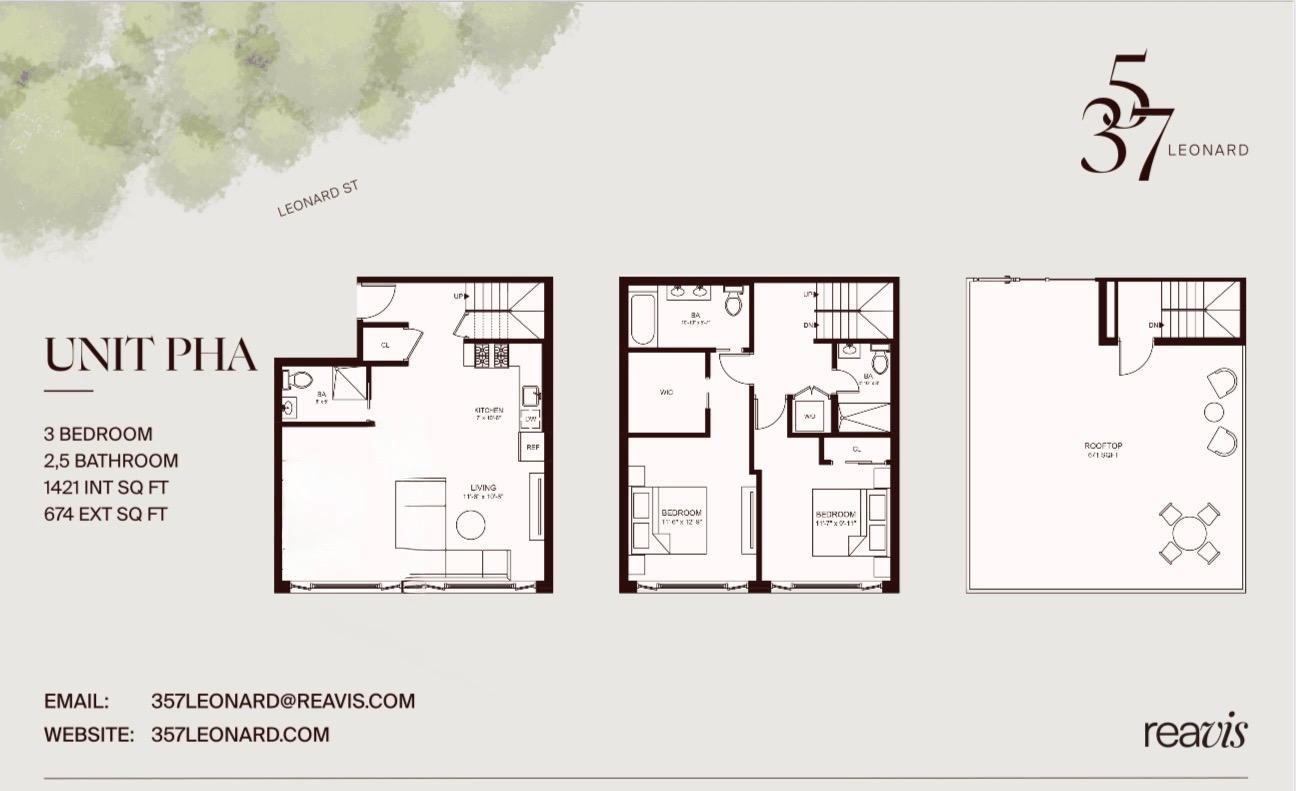 EQUAL HOUSING OPPORTUNITY. ALL DIMENSIONS AND SQUARE FOOTAGES ARE APPROXIMATE AND SUBJECT TO CONSTRUCTION VARIANCES AND MAY VARY FROM FLOOR TO FLOOR. SQUARE FOOTAGES MAY EXCEED THE USABLE FLOOR AREA. THIS ADVERTISEMENT IS NOT AN OFFERING. SPONSOR RESERVES THE RIGHT TO MAKE CHANGES IN ACCORDANCE WITH THE OFFERING PLAN. THE COMPLETE OFFERING TERMS ARE IN AN OFFERING PLAN AVAILABLE FROM THE SPONSOR. Sponsor. File No. CD25-0020. Sponsor: 357 Leonard St, LLC