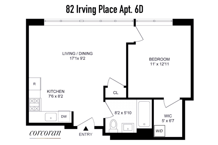 Passing through the living room, the large bedroom also features a floor to ceiling window with open views and a large walk-in closet with a new washer/dryer. The bedroom can comfortably fit a king-sized bed and if a walk-in-closet is not enough storage, the apartment is being sold with a storage unit.