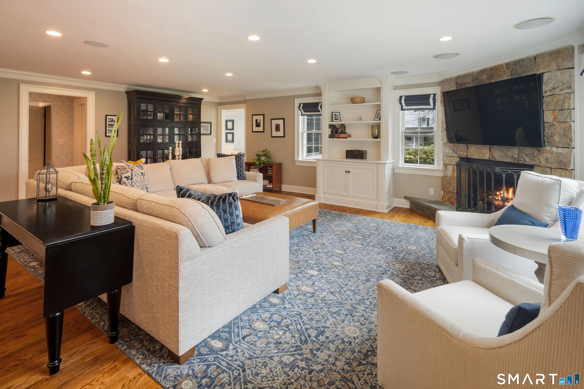 An exceptional opportunity to own in the desirable South of the YMCA neighborhood featuring four bedrooms & 4 1/2 baths, this home is a perfect mix of elegance and practicality. Taken down to the studs and rebuilt in 2006 - this home has it all. From the moment you step inside, you'll be captivated by the sophisticated details, including elegant moldings and wainscoting, rich hardwood floors and sunlit living spaces. The Living room boasts a wood burning fireplace and both LR and DR feature large bay windows. The library accessed off the LR has a trey coffered ceiling and a door to the terrace. Step through to the incredible oversized family room with gas fireplace which is wide open to an updated kitchen complete with top of the line stainless steel appliances, a walk-in pantry and a huge quartzite island. The breakfast nook opens to a charming terrace with a built-in gas grill and a large pergola with retractable shades. Upstairs an incredible primary suite is accented by another gas fireplace, a gorgeously updated bath and huge walk-in closet. There is a large bonus room with vaulted ceiling and three additional bedrooms, two with walk in closets and their own bath and one with access to a hall bath. The unfinished basement is 1784 square feet and is completely dry awaiting your finishing touches! But the piece de la resistance is the over 1 acre of beautifully landscaped level yard perfect for family gatherings, or peaceful relaxation!