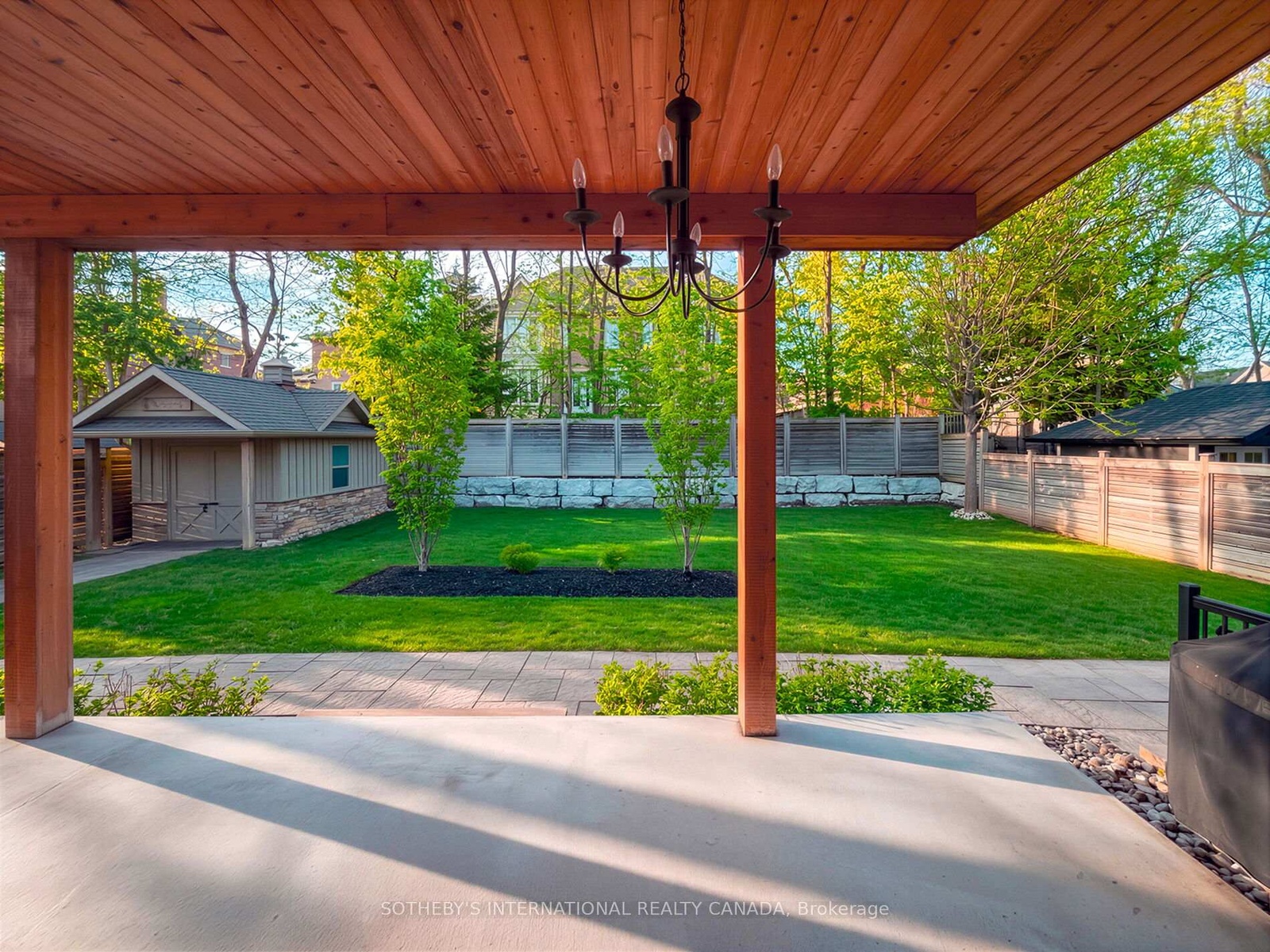 Exquisitely located in the heart of Old Maple, steps from the state-of-the-art Cortellucci Vaughan Hospital, this bespoke custom residence defines luxury living with effortless access to major highways, elite schools, Vaughan Mills, parks, and Toronto. Spanning approximately 5,400 sq ft of living space, the home's timeless exterior features Belden reclaimed brick, natural stone accents, and elegant architectural detailing. Professionally landscaped, fully fenced grounds include mature trees, interlock walkways, and an expansive covered loggia with built-in speakers-perfect for sophisticated entertaining. A matching designer shed and three-car tandem garage complete the exterior. Inside, an 8' custom arched mahogany door opens to soaring 10' ceilings, marble flooring, and hand-scraped oak throughout the main level. Formal living and dining rooms, a butler's servery with wine fridge, and a designer mudroom offer both elegance and functionality. The chef's kitchen boasts marble floors, coffered ceiling, ceiling-height cabinetry, Sub-Zero and Wolf appliances, oversized granite island, quartz surfaces, and sliding doors to the loggia. The family room features a gas fireplace, cultured stone feature wall, and custom built-ins. Upstairs, the lavish primary retreat offers a coffered ceiling, spa-inspired six-piece marble ensuite, and expansive his-and-hers walk-in closets. Three additional bedrooms feature private ensuites and walk-in closets, while a convenient laundry room completes the level. The lower level includes 8.5' ceilings, heated flooring, built-in speakers, a walk-up, and roughed-in fireplace, providing exceptional versatility.