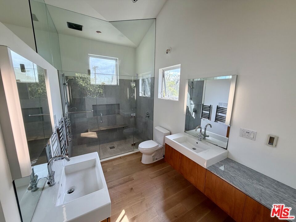 Architectural 2-story home on a prime corner lot in one of Venice's most desirable locations, just 4 blocks to the beach and adjacent to the iconic Venice Canals. Built in 2012, this thoughtfully designed 3 bedroom + office, 2.5 bath residence blends modern style with exceptional functionality. Features include hardwood floors, recessed lighting, central heating and solar panels for energy efficiency. The gourmet kitchen offers stainless steel appliances, a large marble center island with abundant storage, built-in bar, and skylight, opening to a step-down living room with custom built-in shelving.A separate laundry room adds convenience. The entire second floor is dedicated to a stunning primary suite with walk-in closet, skylights, large retractable window, and serene tree-top views. The luxurious primary bath includes a double vanity, double shower, heated towel rack, and skylight. Detached 2 car garage with EV Charger. Large Rear Yard. Unbeatable Westside location near Venice Beach, Venice Canals, Marina del Rey, Abbot Kinney Boulevard, local farmers market, bike path, and top-rated Coeur d'Alene Avenue Elementary School. Surrounded by premier dining, shopping, and coastal amenities, this home offers the ultimate Venice lifestyle.Priced to sellan exceptional opportunity to enjoy the best of beach living.