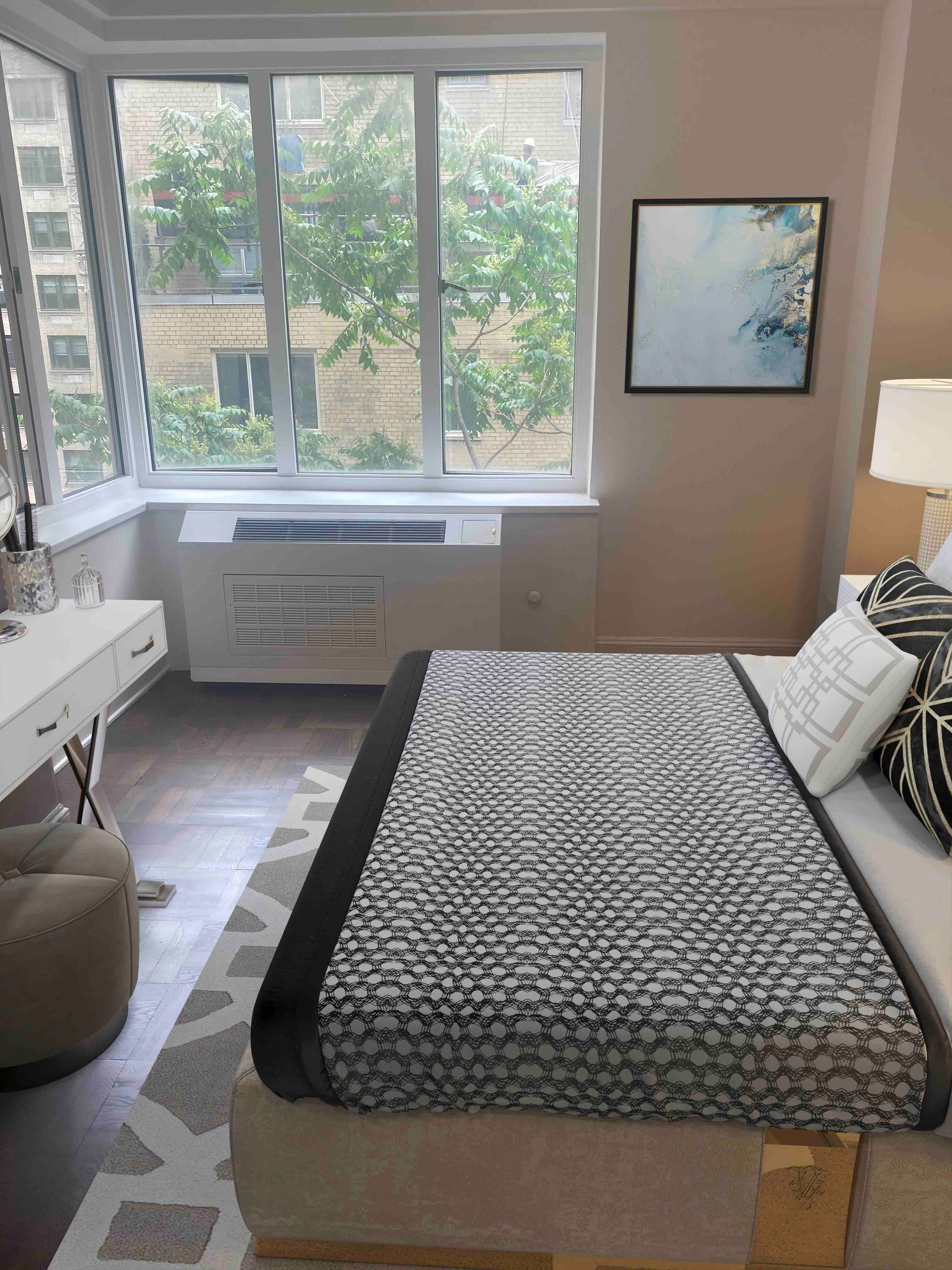 Pristine 2 bedroom two bathroom layout overlooking MOMA like gardens from extra large windows.