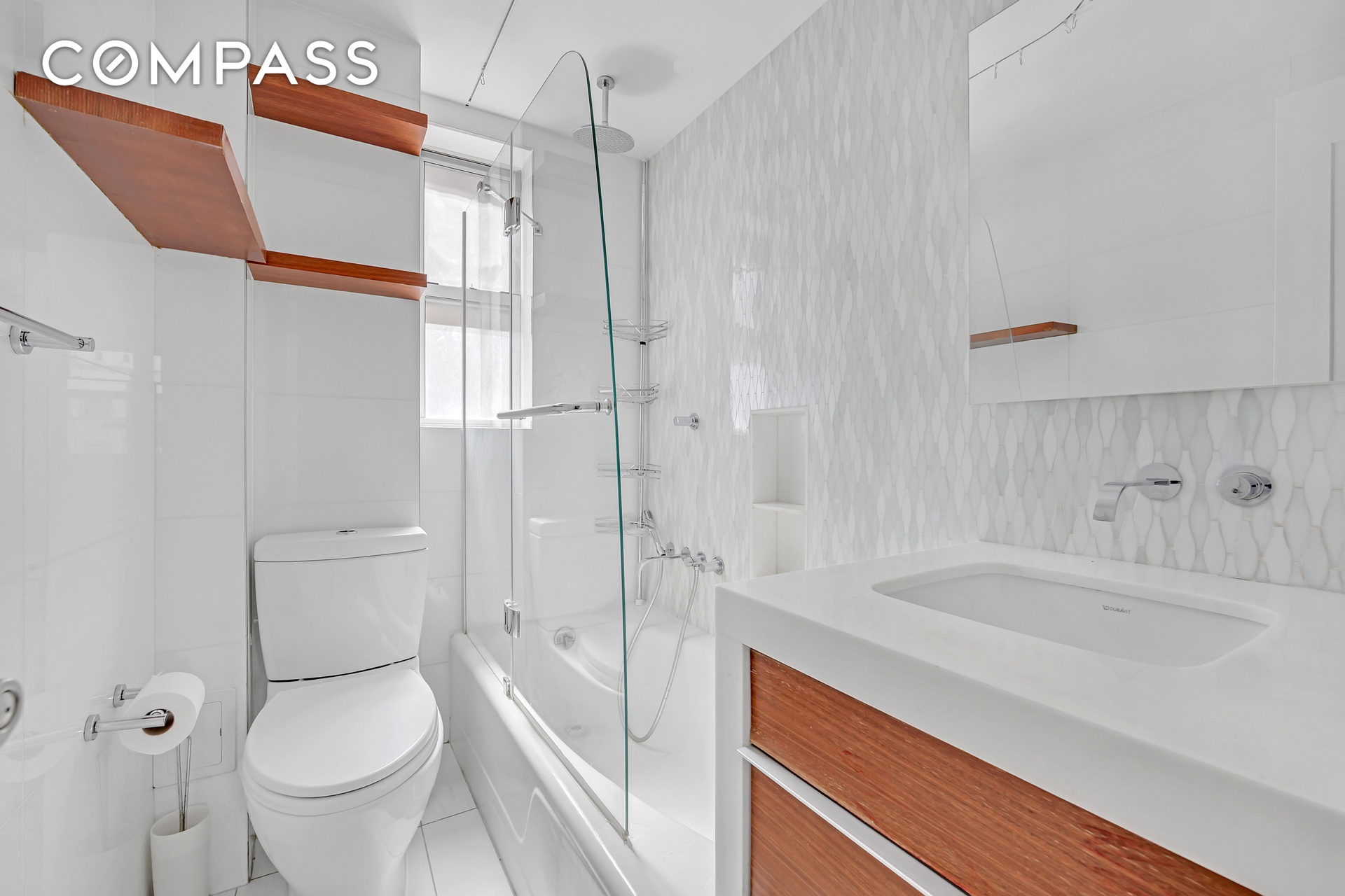 Two-bedroom apartment at The Manor. The modern kitchen boasts ample storage space, a gas range, and a dishwasher. Situated off of the the spacious living room is a northern-exposed primary bedroom and a southern-facing second bedroom. A beautifully renovated windowed bathroom is located between each bedroom. Maintenance includes utilities; cats are allowed.