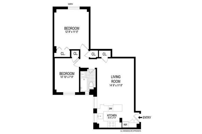Two-bedroom apartment at The Manor. The modern kitchen boasts ample storage space, a gas range, and a dishwasher. Situated off of the the spacious living room is a northern-exposed primary bedroom and a southern-facing second bedroom. A beautifully renovated windowed bathroom is located between each bedroom. Maintenance includes utilities; cats are allowed.