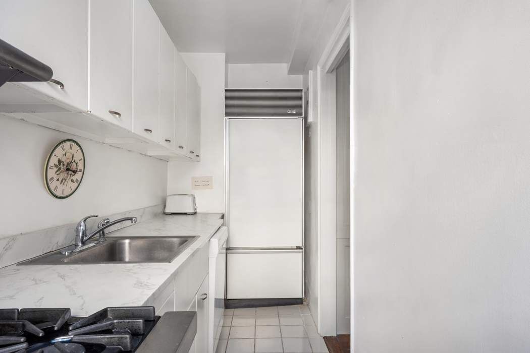 The renovated windowed marble bath offers a large shower with a bench and a generous amount of storage. The bedroom is spacious and has two oversized closets. There is a proper linen closet as well as a hall coat closet upon entering the foyer. The windowed kitchen has a Viking range and a Sub-zero fridge.