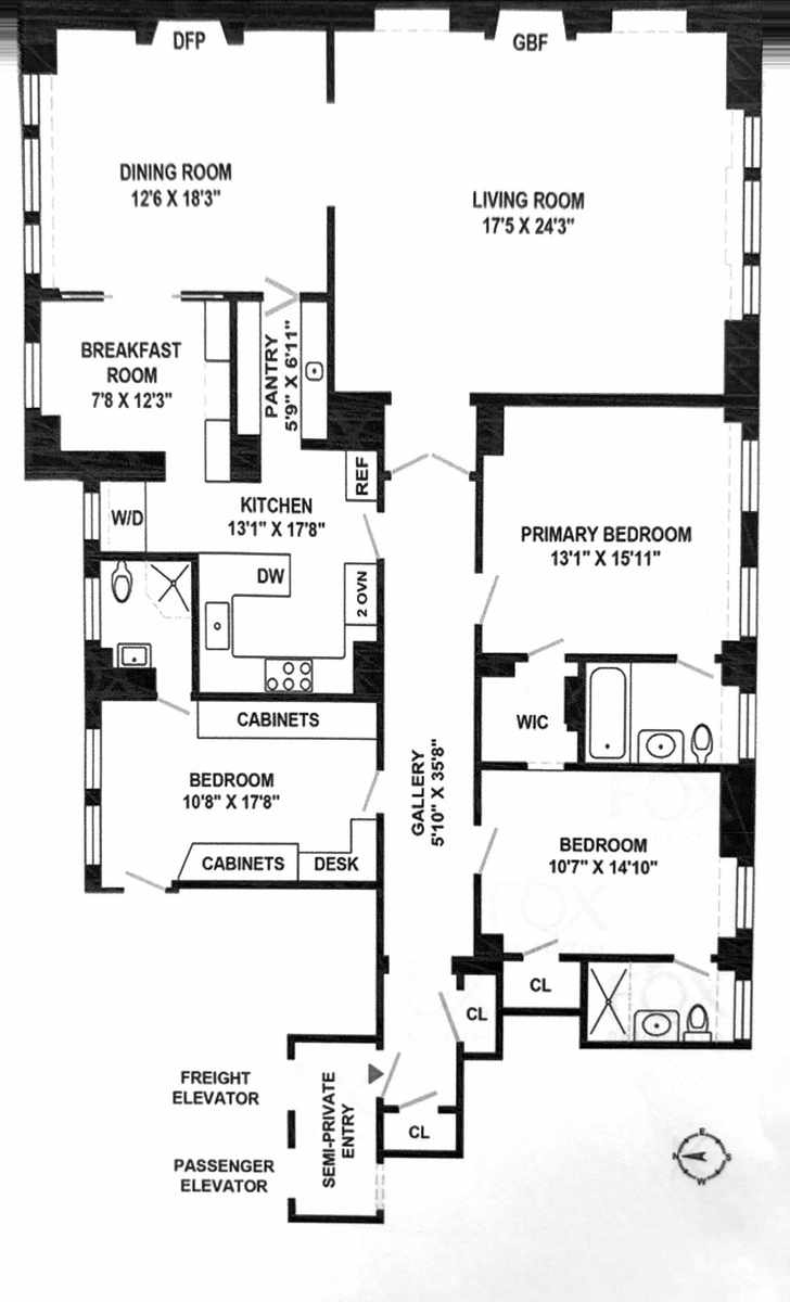 This classic residence offers three spacious bedrooms, each with its own en-suite bathroom, along with oversized new windows, soaring 10'3" ceilings, and central air conditioning for modern comfort.