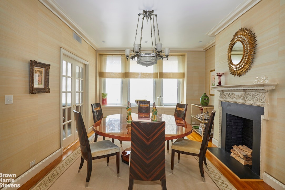 The home's organic flow continues into a grand formal dining room, distinguished by its own unique decorative fireplace-perfect for both intimate dinners and larger gatherings.