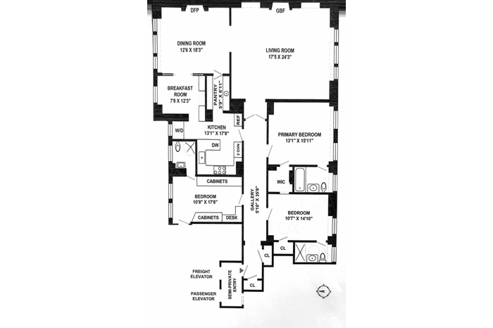 This classic residence offers three spacious bedrooms, each with its own en-suite bathroom, along with oversized new windows, soaring 10'3" ceilings, and central air conditioning for modern comfort.