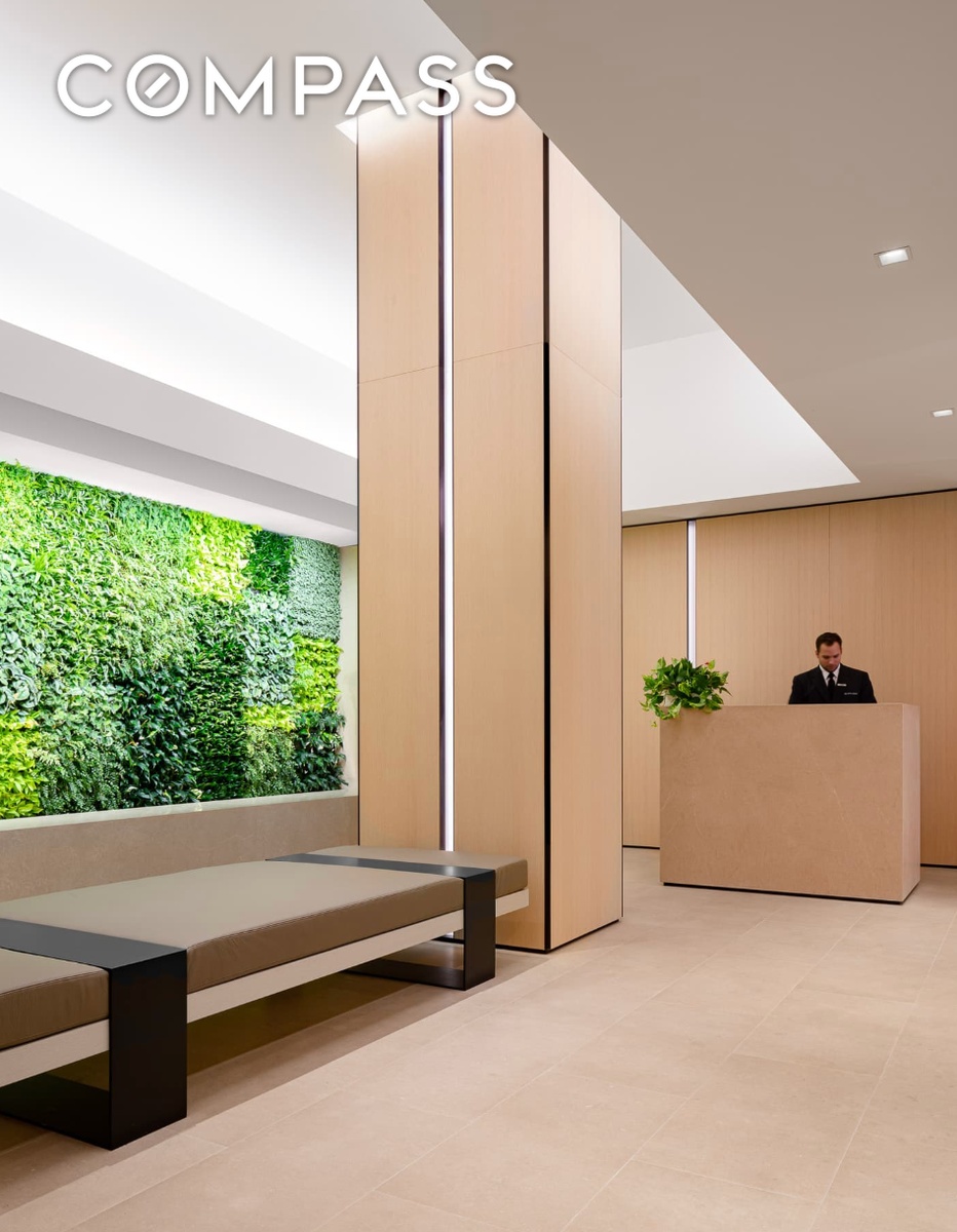 Amenities include a fitness center, storage, and a parking garage. Pied-à-terre and international purchasers are welcome. Flip tax is 2.5%.