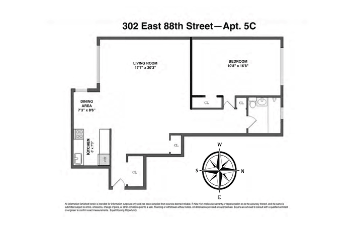 The gracious layout features over a 20' wide living/dining area. The north facing bedroom is flooded with natural light, and is large enough for a king size bed as well as additional furnishings. Apartment 5C is pin-drop quiet with double-pane windows (including in the kitchen and bathroom). It has three exposures, ceiling fans, newly refinished oak floors and massive closet space.
