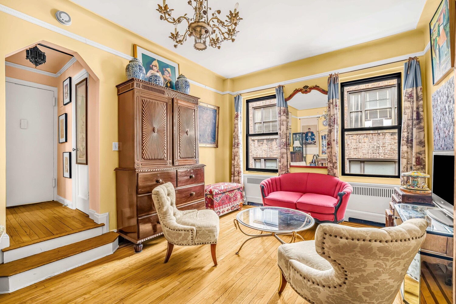 Set within an intimate boutique prewar elevator co-op, 62 East 87th Street, Apt. 4C features a proper entry foyer, a sunken living room that adds depth and separation, and a dedicated dining area ideal for both everyday living and entertaining. Hardwood floors with mahogany inlay and crown moldings highlight the home's architectural character.