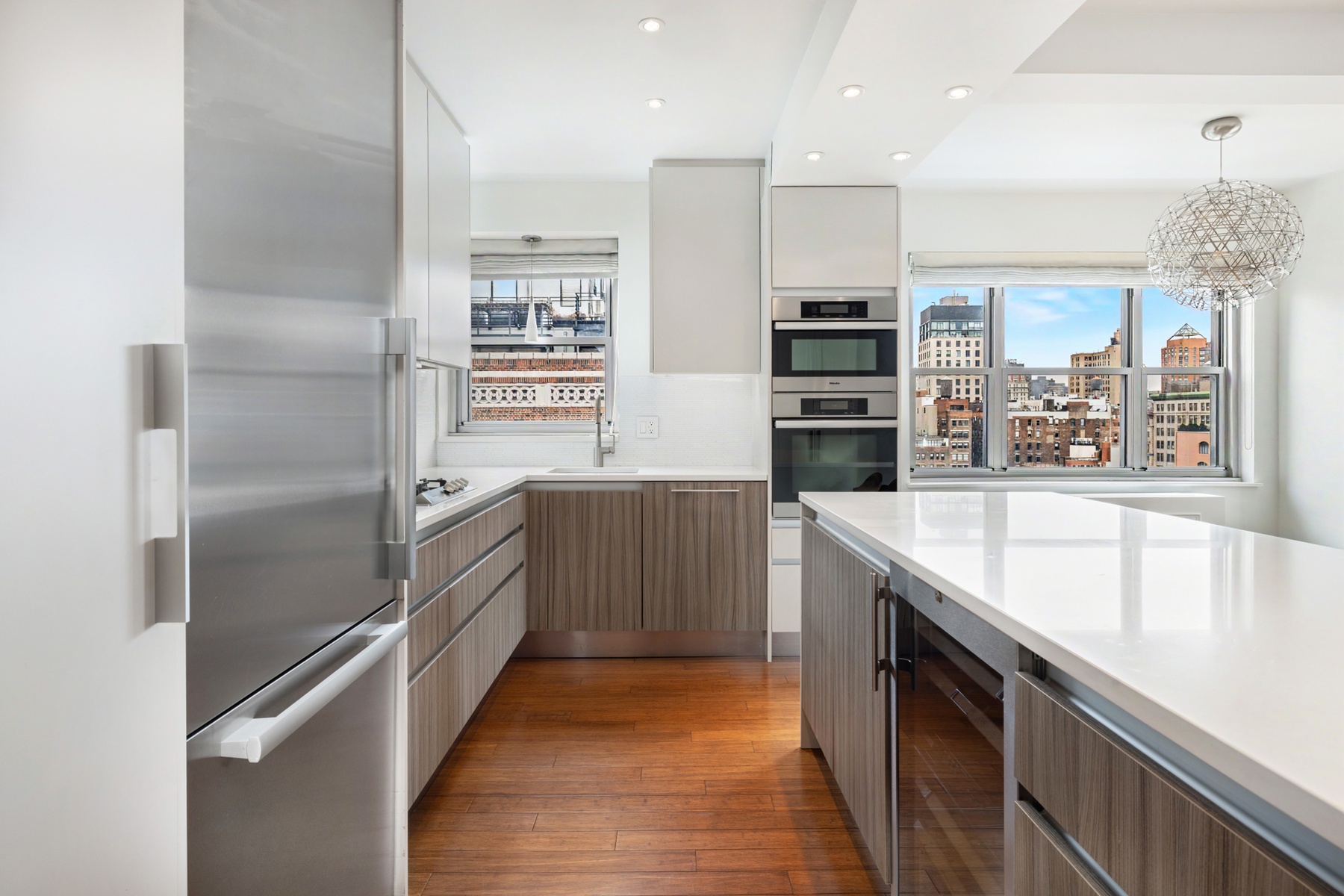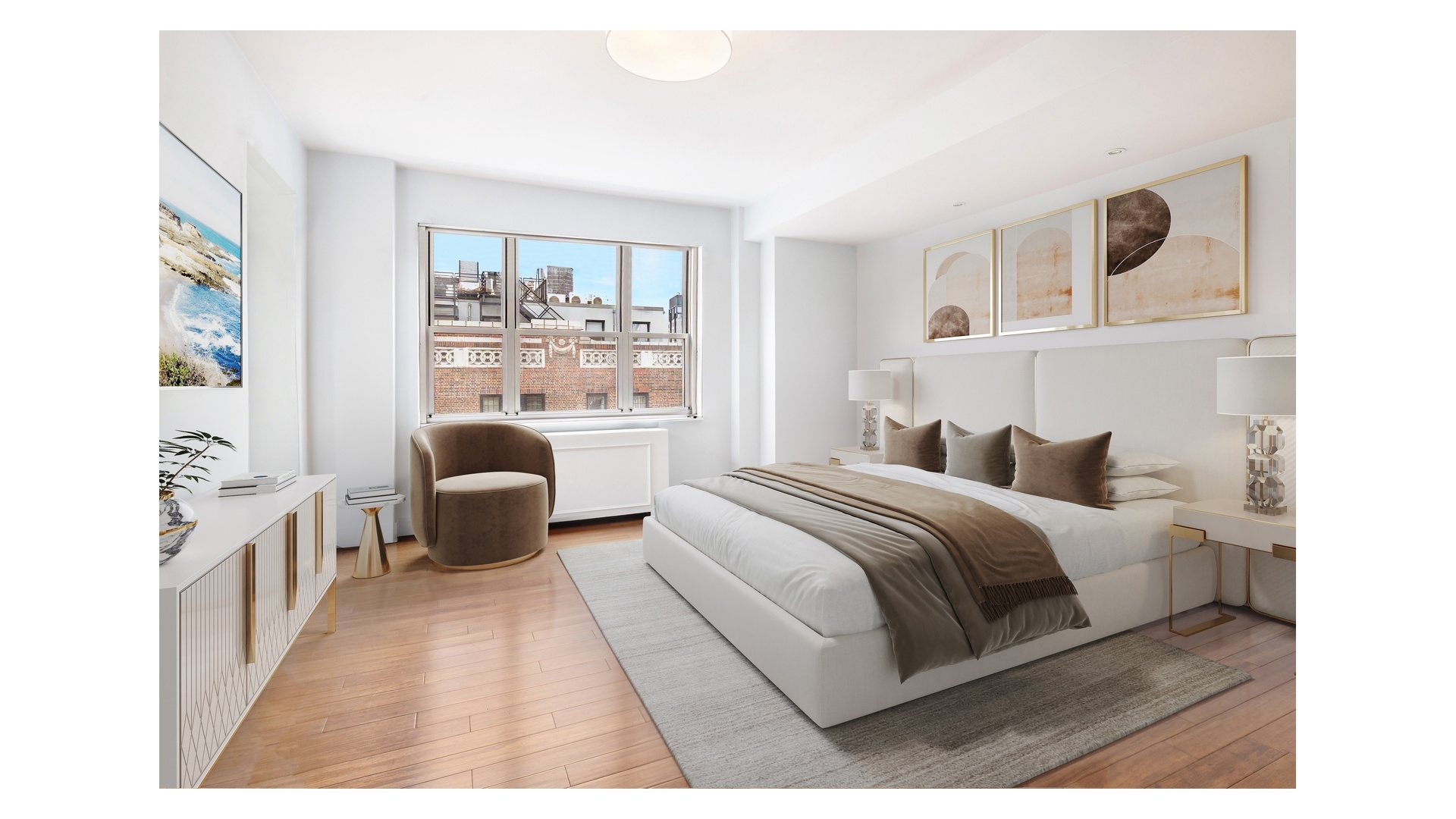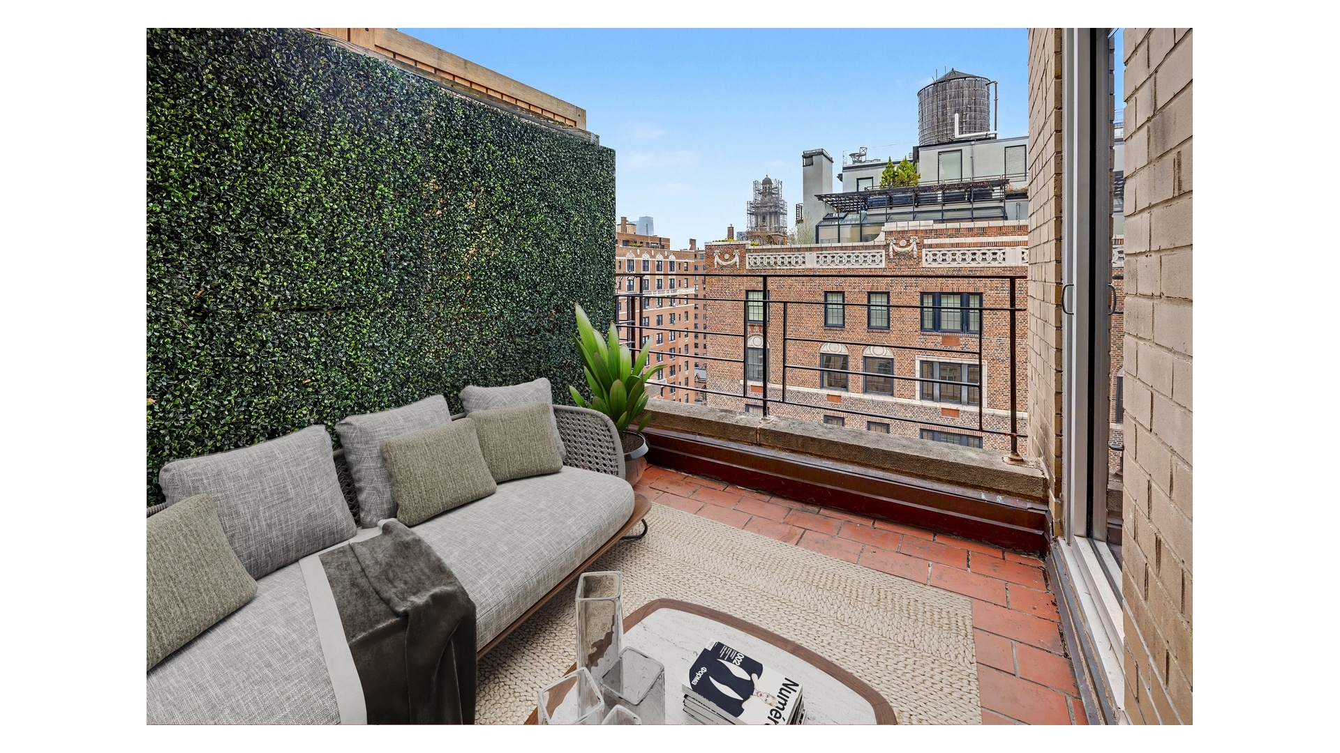Sublime, oversized, exceptional: This impeccably renovated 1 bdrm, 1 bath home enjoys open, Northern exposures with at once charming and commanding city views. A thoughtful open plan with graceful details; the foyer opens into a chef's kitchen with island, beverage fridge, top-tier appliances, window, and custom cabinetry. The living room, with large, windowed alcove, and bedroom both open to sizable and private terraces. The spacious primary suite features custom built-ins and a second, large terrace. A windowed, spa-like bath with large shower with built-in seat is finished in stone with radiant heated floors. Custom & abundant storage and new flooring throughout complete this move-in residence.
