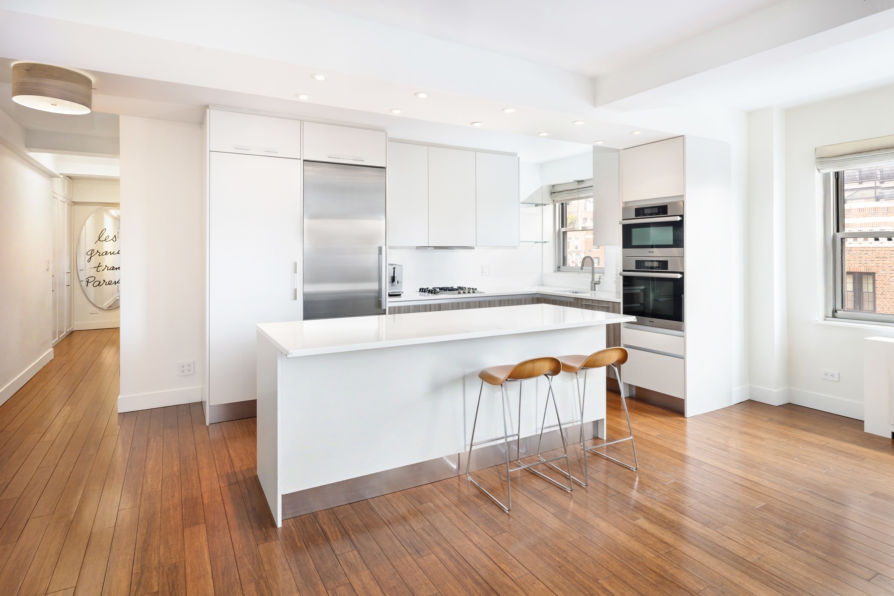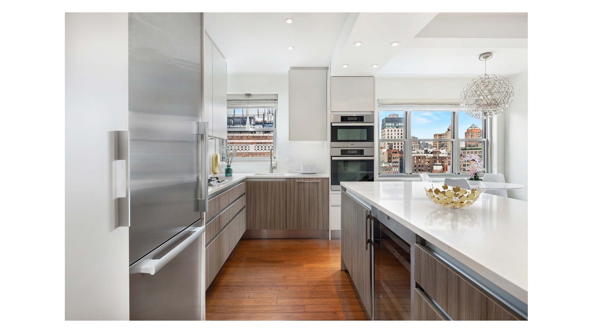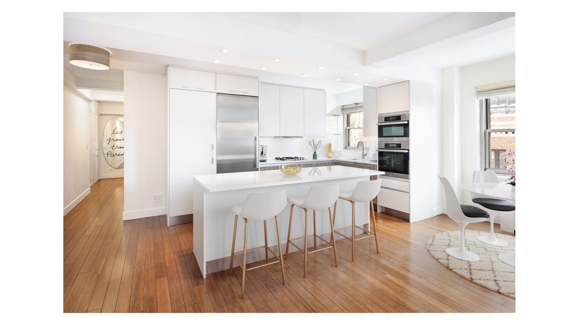 Sublime, oversized, exceptional: This impeccably renovated 1 bdrm, 1 bath home enjoys open, Northern exposures with at once charming and commanding city views. A thoughtful open plan with graceful details; the foyer opens into a chef's kitchen with island, beverage fridge, top-tier appliances, window, and custom cabinetry. The living room, with large, windowed alcove, and bedroom both open to sizable and private terraces. The spacious primary suite features custom built-ins and a second, large terrace. A windowed, spa-like bath with large shower with built-in seat is finished in stone with radiant heated floors. Custom & abundant storage and new flooring throughout complete this move-in residence.