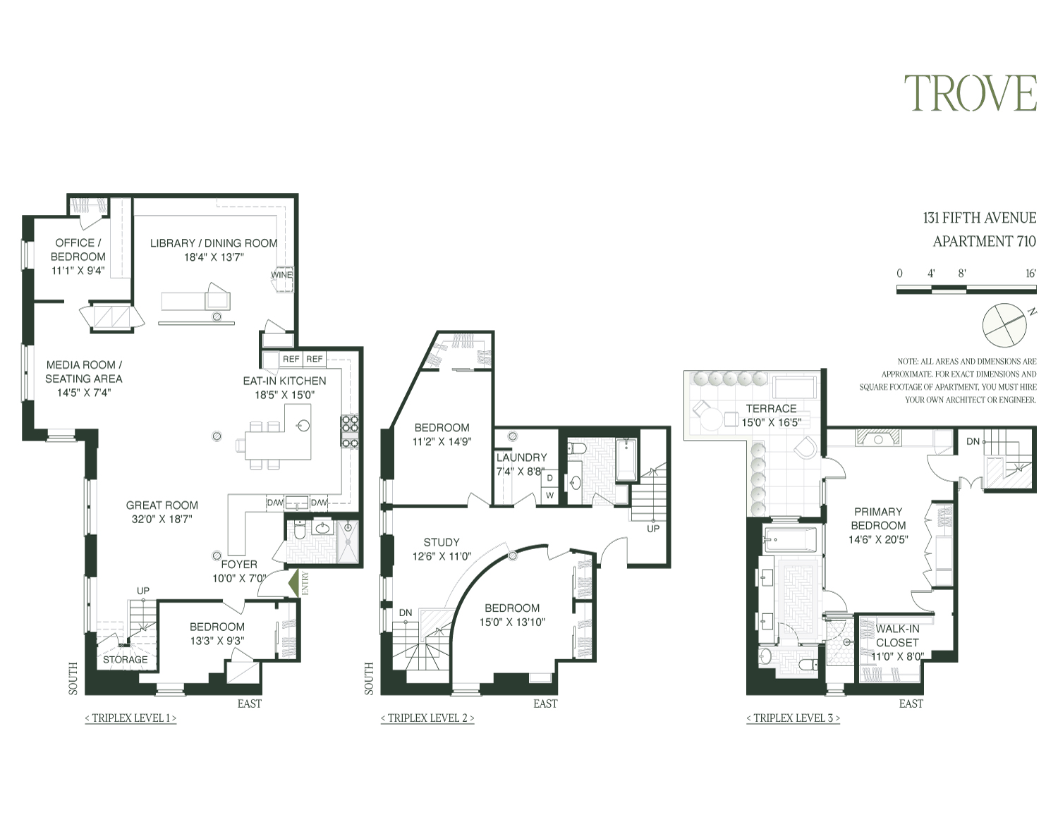 All dimensions are approximate. For exact dimensions, you must hire your own architect or engineer.