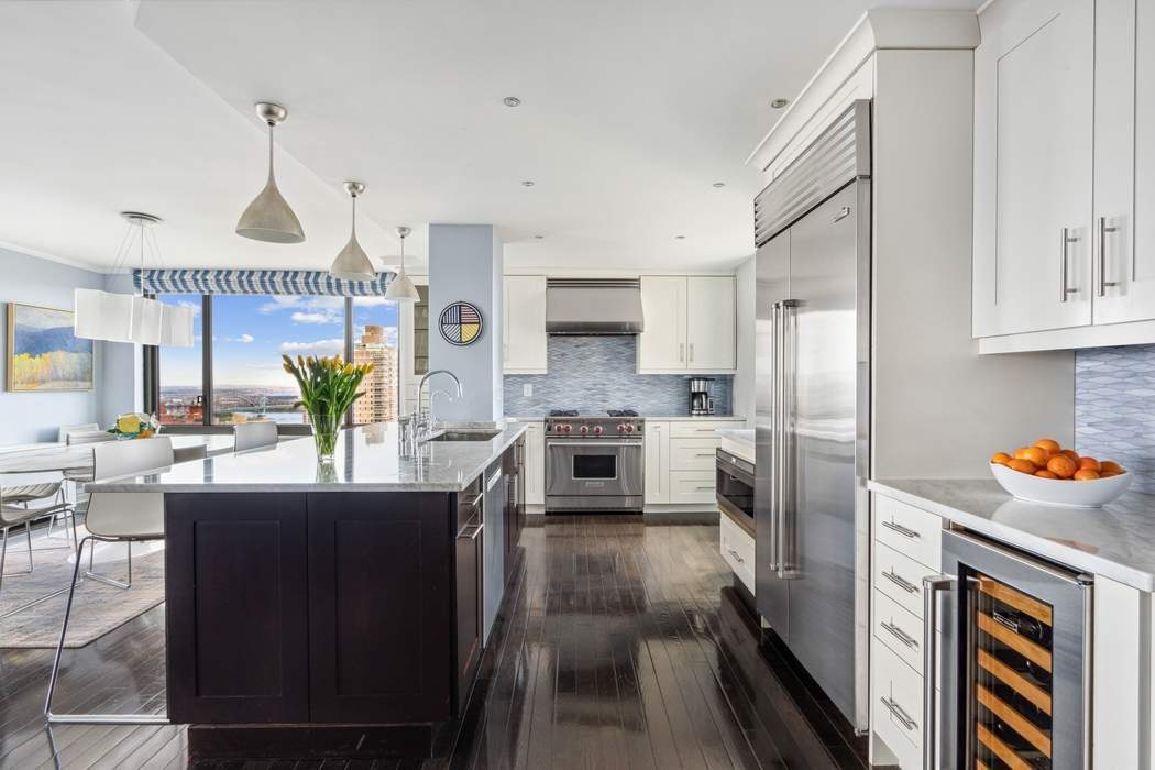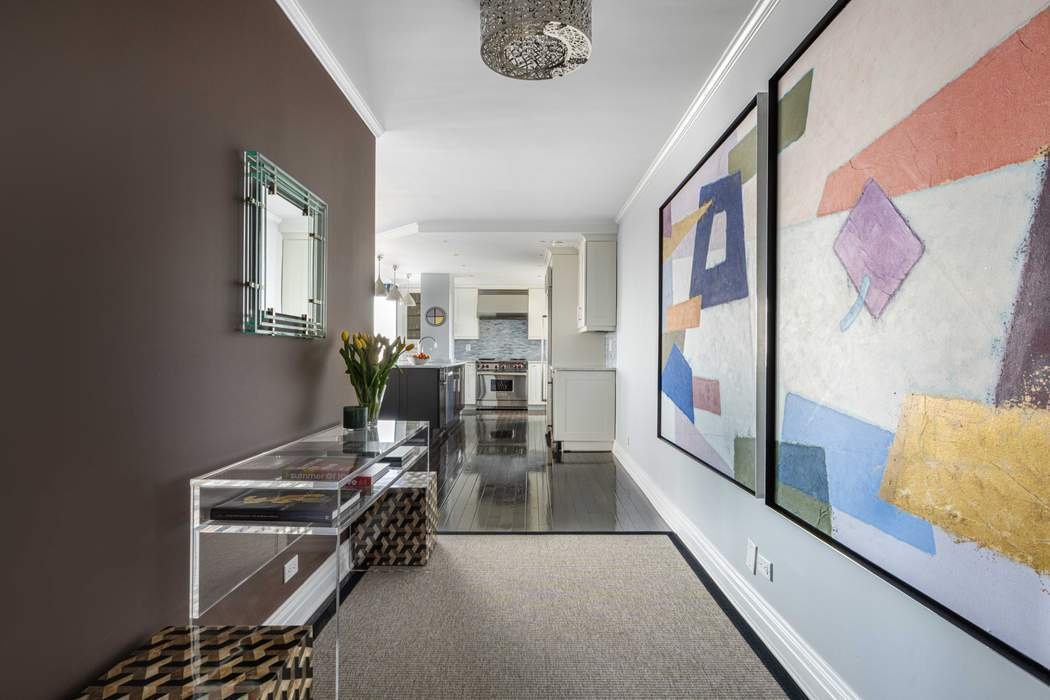 This fully renovated, move-in ready corner home blends elegance with modern sophistication. A gracious 16-foot gallery foyer welcomes you in, offering the perfect setting to display art, and opens into a sun-drenched 29-foot living room that flows seamlessly into a corner dining area. The adjacent open chef’s kitchen features a large marble center island and top-of-the-line appliances, including a Sub-Zero refrigerator, wine cooler, Wolf range with griddle and hood, Wolf microwave, and Bosch dishwasher.