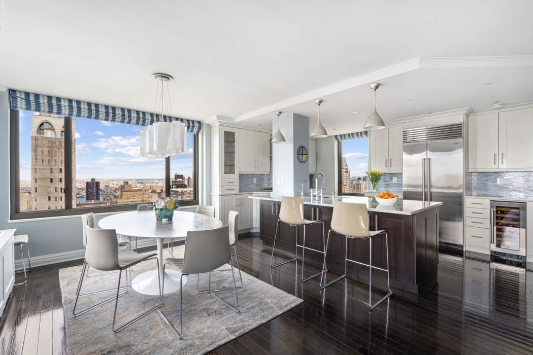 Perched on the 38th floor, this exceptional 2-bedroom, 2-bath residence can be effortlessly converted into a spacious 3-bedroom home. With sweeping exposures to the north, east, and south, the apartment showcases breathtaking panoramic views of the Manhattan skyline, Central Park, the Reservoir, and the East River.