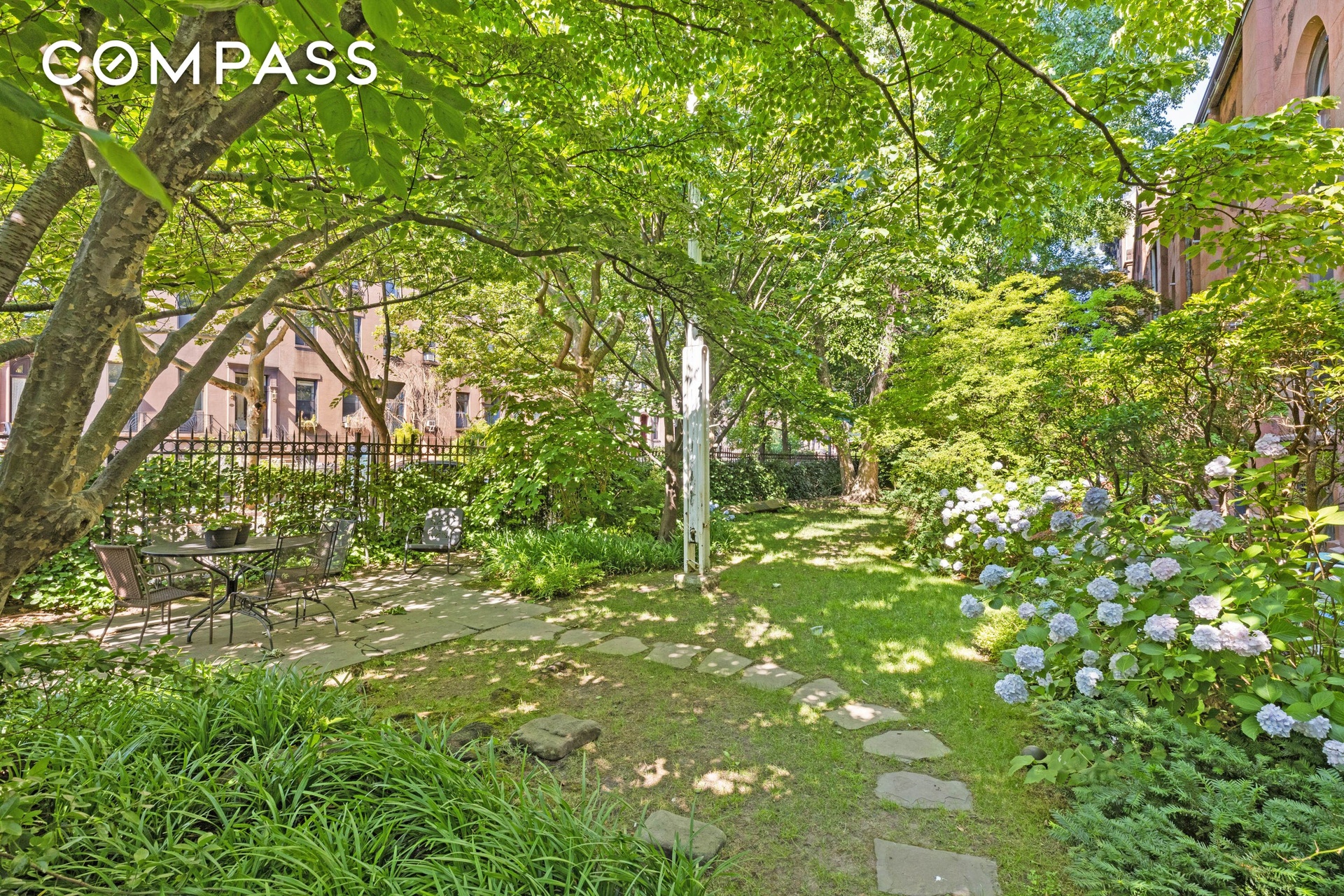 450 Clinton Street is a well-maintained elevator co-op offering residents a full suite of conveniences, including on-site laundry, a bike room, voice intercom, and a live-in superintendent. A standout feature of the building is its beautifully landscaped shared courtyard, as well as access to a rare, expansive private garden stretching along 1st Place—complete with mature trees, lush greenery, and seating areas for relaxing or dining outdoors.