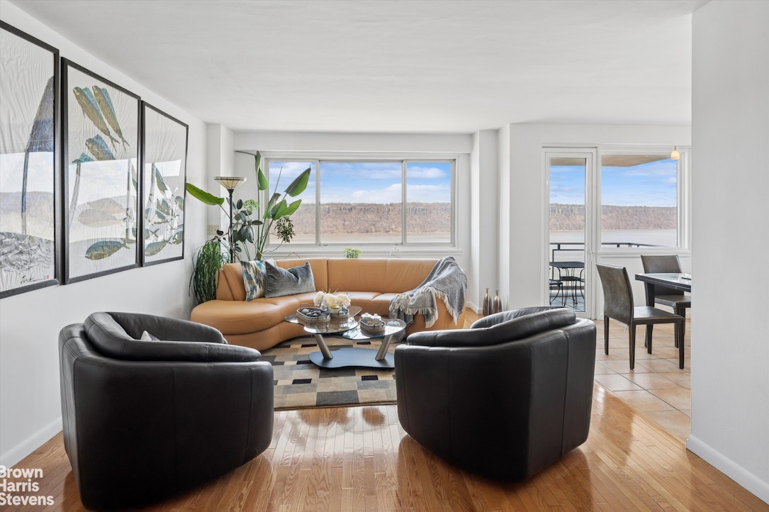 This stunning corner apartment at Hudson and Palisade Avenue offers magnificent, unobstructed views of the Hudson River and two iconic bridges. Enjoy a front-row seat to soaring birds, sailing boats, anchored barges, and breathtaking sunsets nearly every day. This tranquil setting provides the perfect retreat to unwind after a hectic workday, while also offering an inviting space for entertaining.