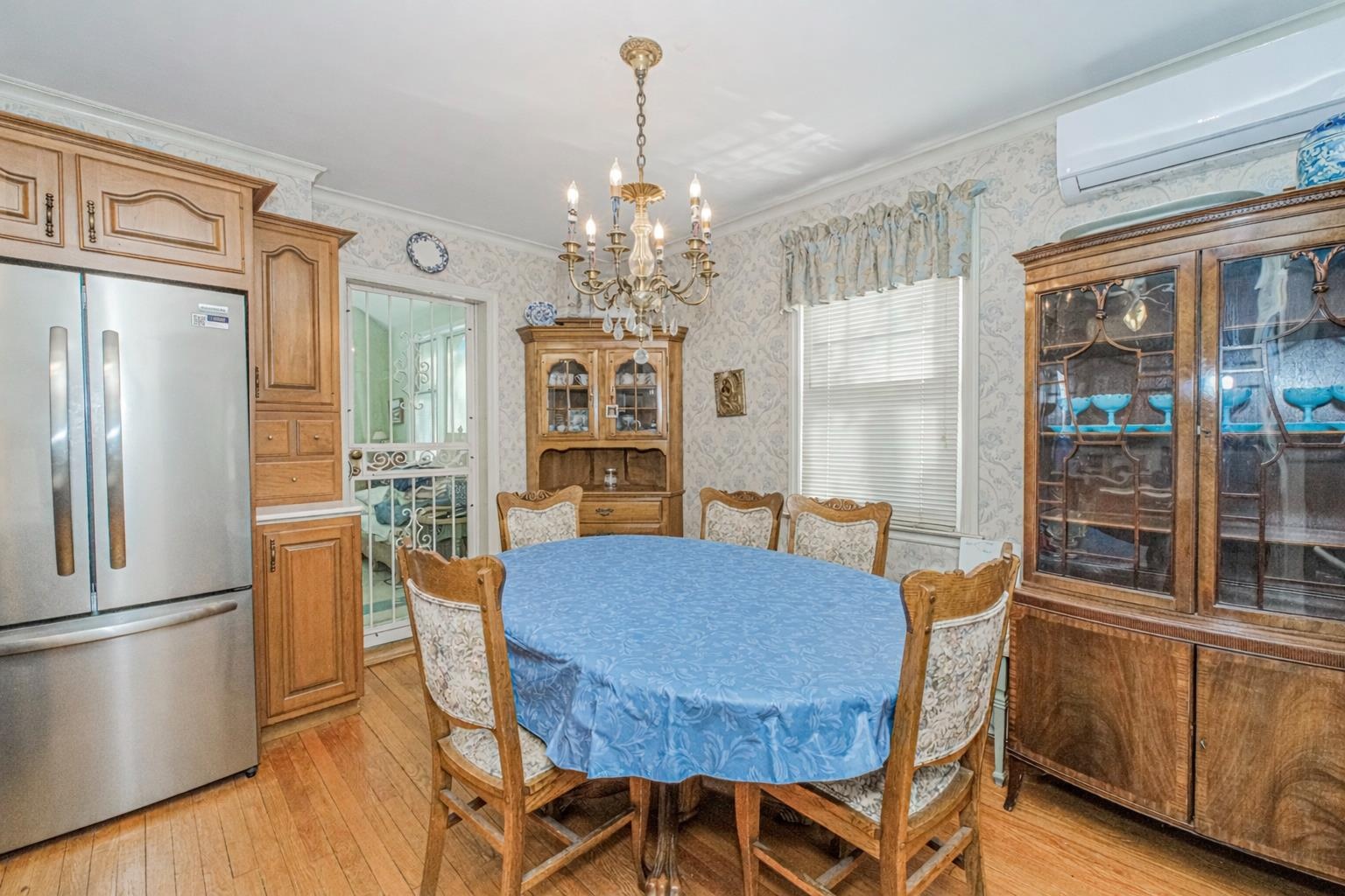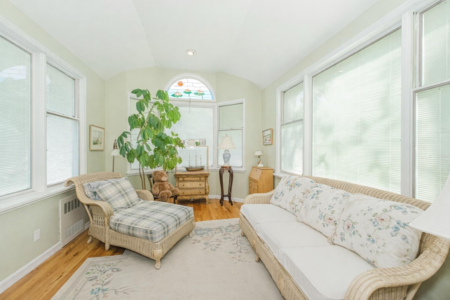 Welcome Home! This is a lovely colonial style 2 level house, with an undeniable hallmark white ranch style fence curb appeal. Built in 1945, this house is radiant with charm and cozyness. On the first floor you are greeted with a foyer, which is then followed by the living room. Off to the left is a formal dining room and as you walk further into the home you're invited into the Eat In Kitchen. Just off of that is a lovely sitting sun room where residents can relax and enjoy their leisure time. There is also a full bathroom located on the first floor as well. Off the kitchen is a door that leads out to the fenced in backyard where you'll find an Olympic Size inground swimming pool, patio and grassy knoll area. The second floor conists of 2 Bedrooms and a full bathroom. And the basement is finished with both a small kitchenette are and 3/4 bathroom. In addition, this property comes with a private driveway and garage. Make this beautiful home yours today!