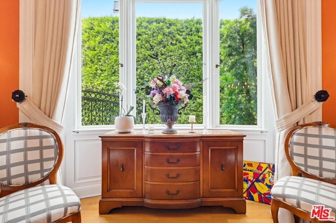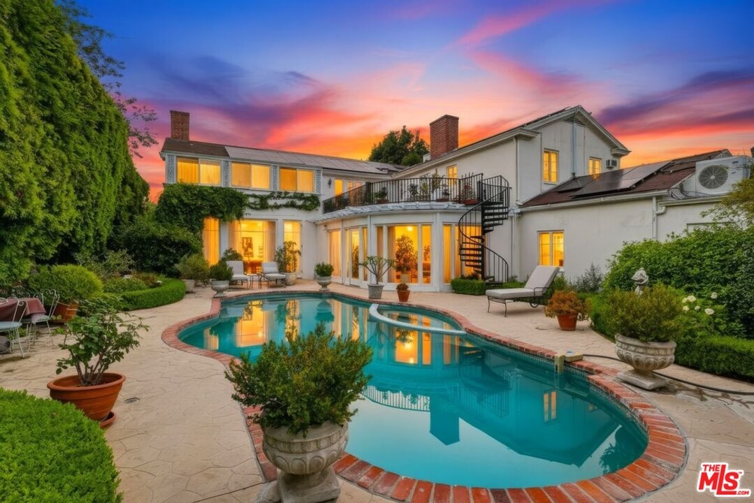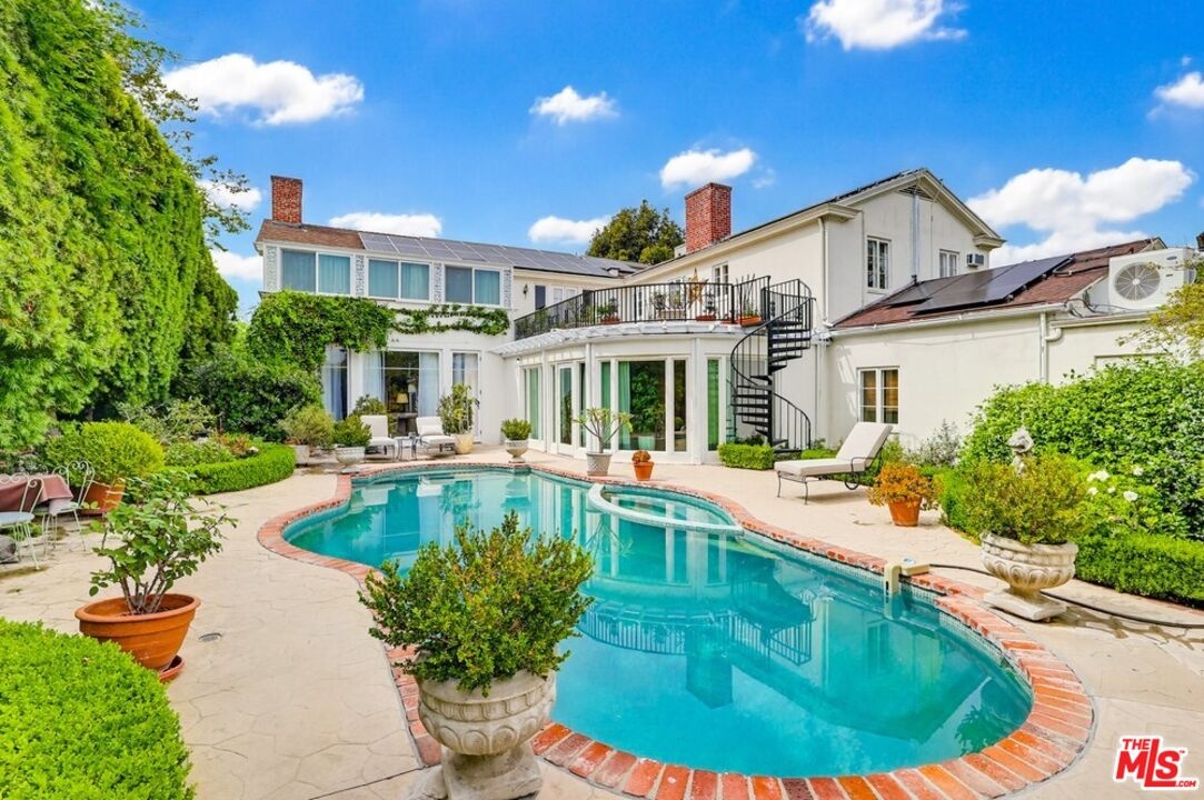 Wallace Neff c.1941 Dreamy New Orleans style brick front masterpiece available for lease (furnished or unfurnished) in Prime tree-lined Hancock Park! A Rare find! Exquisitely remodeled with care for the historic details. Lushly landscaped semi circle front driveway with fountain lands you at the curved & covered front porch. The front door opens to a dramatic 2 story oval entry with sweeping staircase. To your right is a voluminous Formal Living Room with built-in book shelves, fireplace, and glass doors opening to the private garden with pool/spa, and covered entertainer's patio with seating & dining areas, and built-in BBQ/fridge+sink. The grand formal dining room to the left of the entry can host your most intimate or magnificent meals. Straight ahead from the entry is a sun drenched sophisticated gathering room with fireplace and a curved wall of glass windows & doors to the rear yard. A connected butler's pantry with wet bar off this room leads to the gourmet eat-in kitchen with center island, top of the line appliances, a desk/study space & a door to 1 of 2 laundry rooms downstairs. For grocery/car loading convenience, a service hall behind the kitchen has direct access from the gated north driveway with carport. Lots of amazing storage areas throughout the house--Mr. Neff was a famously clever architect! Off the back hall + back stairs are a downstairs guest room with bath, a 2nd laundry/kitchenette room, and further down the hall is a massive Media/Familyroom (former garage space) with French doors on opposite walls leading to driveway side and to pool/patio side. This entire area downstairs (bedroom to media room) and the rear bedroom upstairs off the backstairs can be closed off from the rest of the house, if needed, for guests, family or staff. Upstairs are 3 generous bedroom suites each with bath, including the spacious Primary suite with fireplace and enclosed sun porch. Off the upstairs landing, French doors open to a wonderful, large deck overlooking the rear yard with access directly to the yard via a iron spiral staircase! Truly an amazing estate with interior space of nearly 6800 sq.ft. & a lot size of over 16,000 per tax rolls. Rental price is for unfurnished however it can be leased furnished for a negotiated higher price depending on what furniture is included. 3 Tesla solar PowerWalls for reduced electric bills! Security system +more! A VERY special property!!