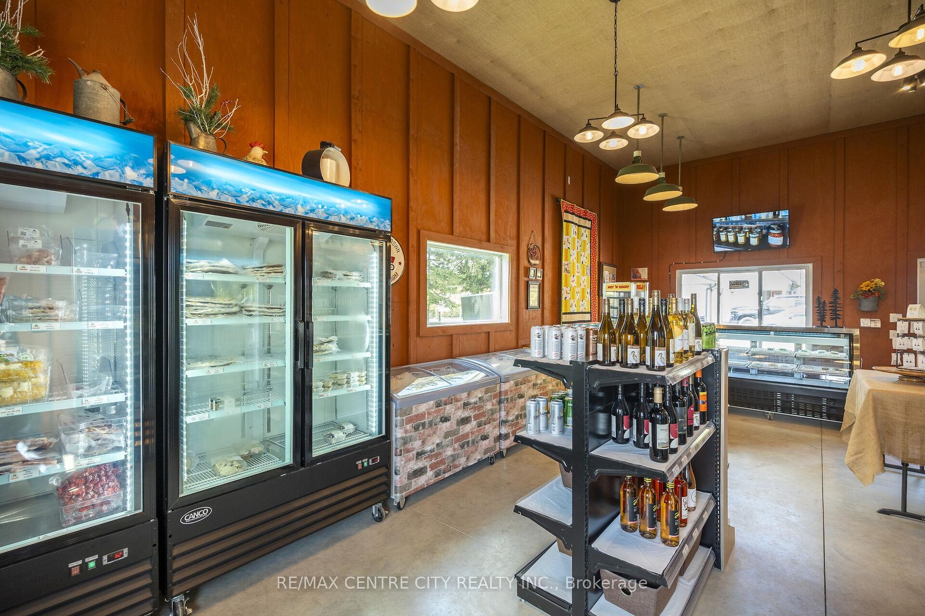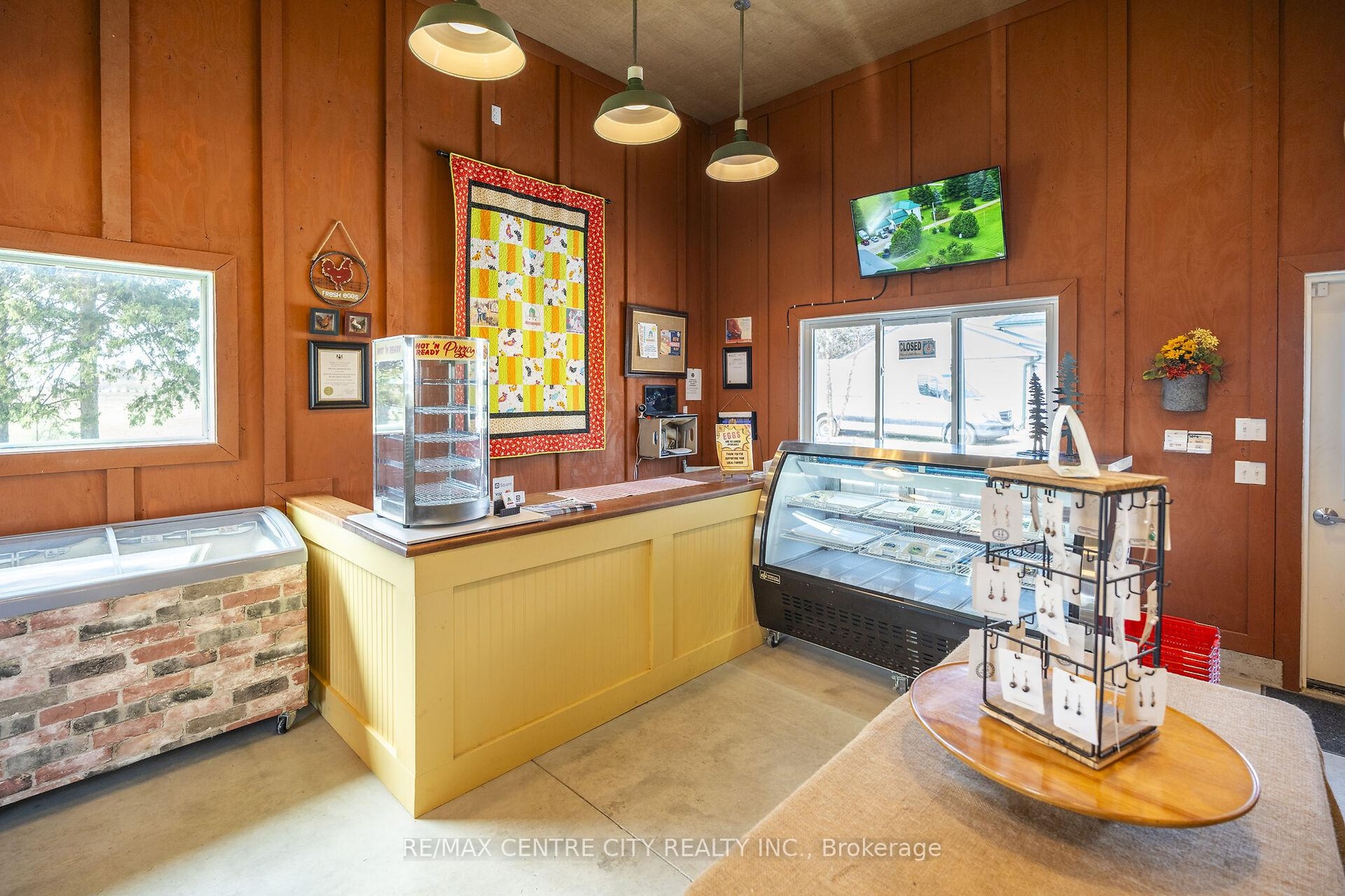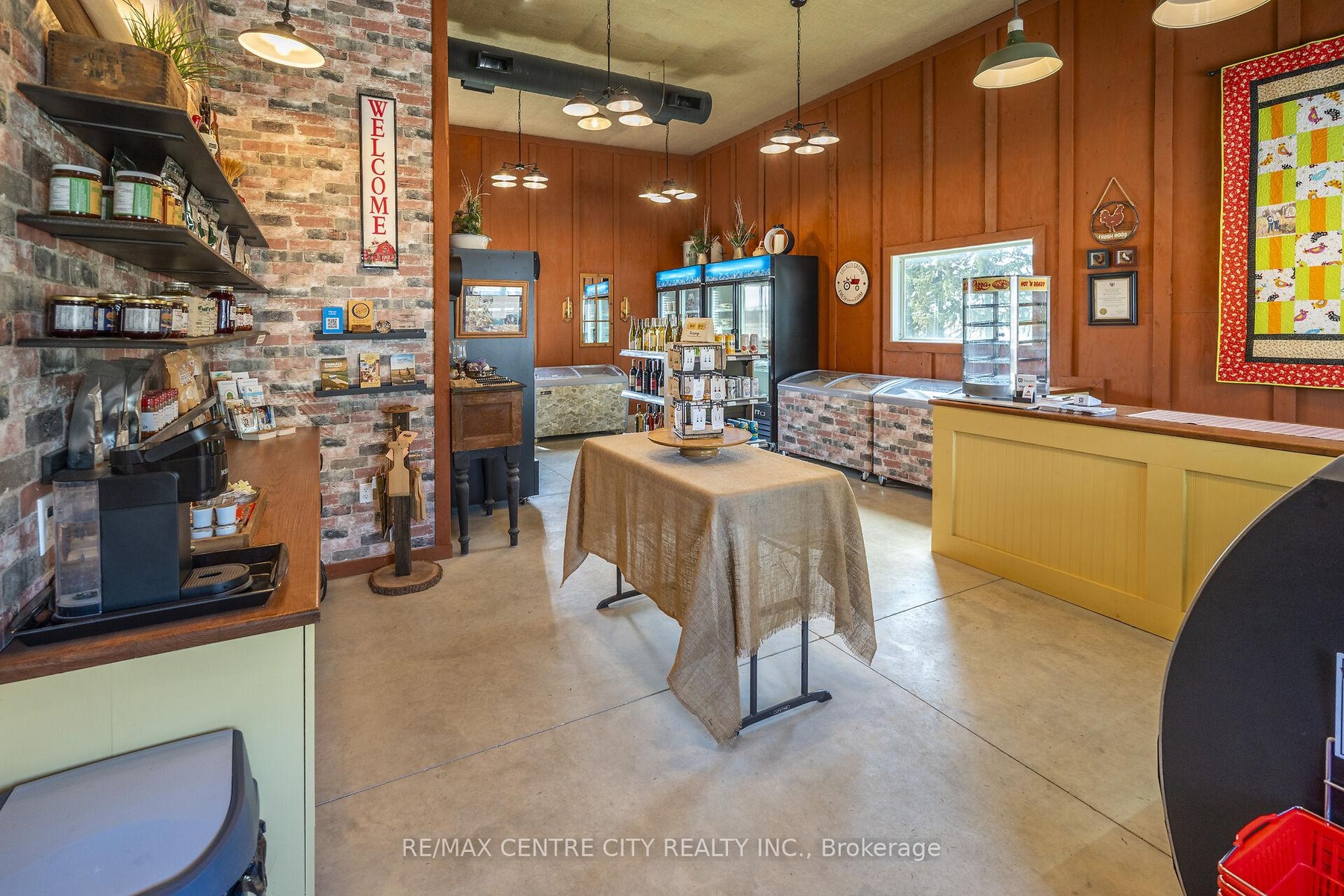 This stunning 5.5 acre property offers a unique opportunity to take over a well-established, ongoing farm to table business.At the heart of the property is a charming storefront featuring locally sourced and farm-grown products-from artisanal chicken raised right here on the farm, to fresh eggs from laying hens, and even seasonal strawberries grown on-site.The property also features a beautifully maintained farmhouse, thoughtfully updated over the years with modern amenities. Inside, you'll find four bedrooms, two full bathrooms, main-floor laundry, and a warm, inviting dining and living space-perfect for family life in the countryside.Just steps away, the attached garage has been converted into a fully certified commercial kitchen-ideal for preparing the homemade goods sold right in the store.The outbuildings are equally impressive. The main shed includes equipment storage area, along with two separate, well-designed chicken brood and grow-out rooms. These connect directly to a secure outdoor fenced area, creating a seamless setup for raising artisanal poultry.The shop and retail space is thoughtfully laid out, with a dedicated woodworking area, as well as a large walk-in fridge and freezer. The retail storefront is beautifully presented, complete with multiple display fridges showcasing local products. It's even licensed through the LCBO to sell local craft beer and wine.Out back, you'll find a well-established strawberry patch with capacity for up to 4,600 plants, fully equipped with irrigation. Along the east side of the property, there are an additional two acres of open space-offering plenty of potential for expansion, whether that's increasing crop production or introducing livestock like cattle or horses.Set back from the road and surrounded by peaceful countryside, this property offers both privacy and charm-along with a rare opportunity to step into a fully operational, licensed farm business.