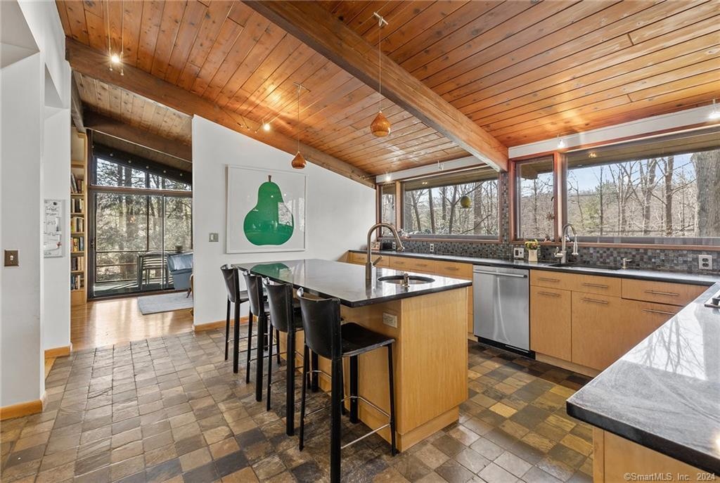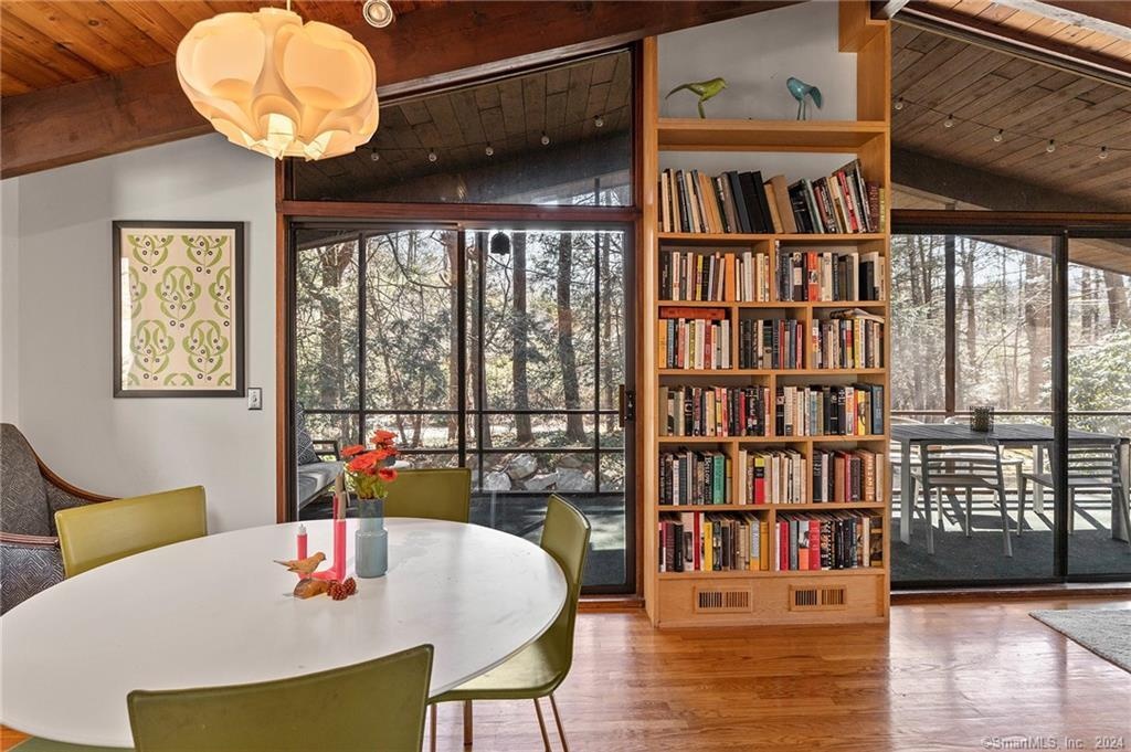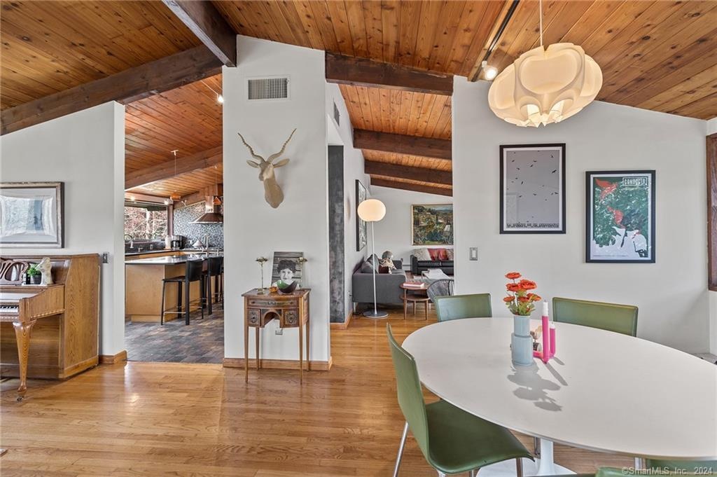 This 4 bedroom, 3. 5 bath Mid Century deck house, set on a private acre, beautifully blends retro charm with modern style.