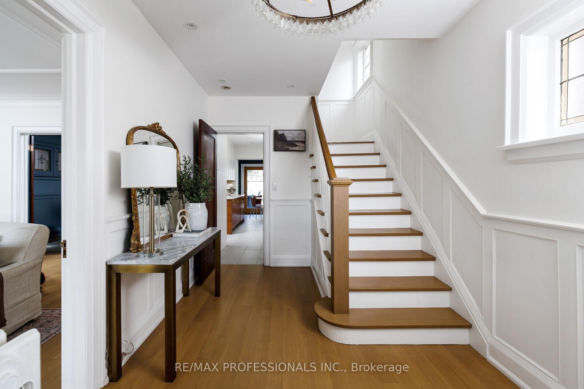 Overlooking the Iconic Old Mill and Humber River, just off the historic brick streets of Halford Ave, sits Riverview Gardens. A quiet cul-de-sac of only thirteen homes, all with unobstructed tree-top views of Etienne Brulee Park and the river valley. It's charming and feels set apart, yet it's so close to the best of the West End's amenities.99 Riverview Gardens draws you in from the street with its timeless Tudor Revival facade and cascading river-rock gardens that burst with mature hydrangeas when the weather warms. Enter a warm transitional home featuring a rich marble foyer flanked by two closets for ample storage, warm hardwood floors, and an inviting layout perfect for entertaining. This home is atypical in the best way - characterized by large, gracious rooms throughout. Even the basement is a standout, featuring extensive excavation that makes it a space you'd truly use. Hollander Landscaping meticulously updated the backyard, creating gardens, grass & entertainment spaces. The professional gardener planned gardens and flowering river rock walls that balance the hardscaping. Don't miss it!