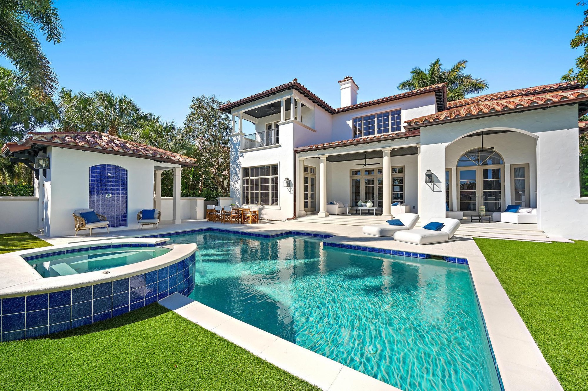 Prestigious and rare opportunity in Trump National in Jupiter. Set behind the gates of this private enclave, this 4-bedroom Mediterranean residence has been recently renovated to accommodate a most discerning audience. Overlooking the 8th fairway of the Jack Nicklaus designed course the views are spectacular and pristine. Interiors are designed for a contemporary lifestyle with free-flowing areas including an open eat-in kitchen with top-of-the-line appliances, center island with seating and the all-important planning desk. Sophisticated architectural details and symmetry throughout are softened by the pure livability of the home. Outdoors enjoy a private heated pool, covered loggia, sumptuous dining area, cabana w/full bath & 2 two-car garages all complete this exclusive offering. DISCLAIMER: Information published or otherwise provided by the listing company and its representatives including but not limited to prices, measurements, square footages, lot sizes, calculations, statistics, and videos are deemed reliable but are not guaranteed and are subject to errors, omissions or changes without notice. All such information should be independently verified by any prospective purchaser or seller. Parties should perform their own due diligence to verify such information prior to a sale or listing. Listing company expressly disclaims any warranty or representation regarding such information. Prices published are either list price, sold price, and/or last asking price. The listing company participates in the Multiple Listing Service and IDX. The properties published as listed and sold are not necessarily exclusive to listing company and may be listed or have sold with other members of the Multiple Listing Service. Transactions where listing company represented both buyers and sellers are calculated as two sales. "No payments made until title passes" Some affiliations may not be applicable to certain geographic areas. If your property is currently listed with another broker, please disregard any solicitation for services. Information published or otherwise provided by seller, listing company or its representatives is deemed reliable but are not guaranteed and subject to errors, omissions, or changes without notice. Copyright 2026 by the listing company. All Rights Reserved.