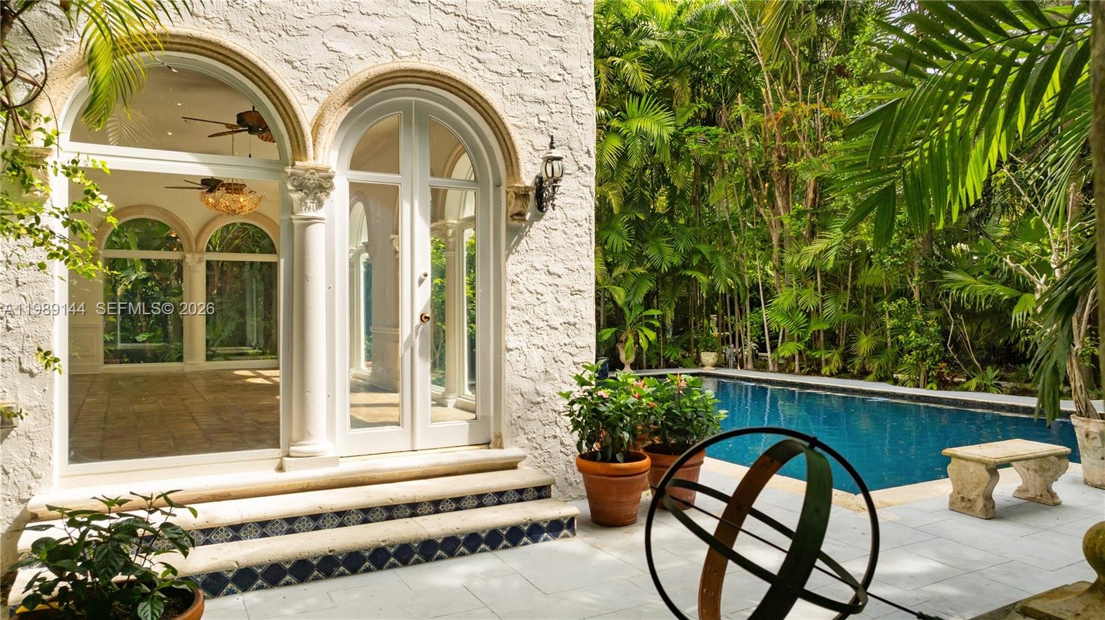 Exceptional opportunity to own a classic, Mediterranean-style home, one of South Coconut Grove’s most unique properties. This ultra-private estate sits on an extraordinary 21,000 sf lot with a 700 sf pool surrounded by lush tropical gardens. Light-filled interior flows easily from the main living areas to inviting outdoor spaces. This vintage Mediterranean style home offers original Dade County pine floors, a grand living room with 11 ft ceilings, wood burning fireplace and adjoining sunroom creating a most enjoyable serene setting and timeless appeal. The formal dining room has an adjoining butler pantry, and the kitchen opens to a garden patio perfect for alfresco dining. On the second floor, there are 2 bedrooms, bath and a Primary Suite with a wood burning fireplace, bathroom with rainfall shower and steam and private terrace overlooking the pool and grounds. Impact windows throughout, full home generator and multiple CC cameras. Available architectural plans to upgrade the house to a total of 6,217 sf and 5-bedroom suites, presenting a rare opportunity to enjoy the existing residence, expand, or create a new custom estate. Whether you choose to enjoy the home as it is, personalize and expand over time, or design a new custom residence, this exceptional property offers rare flexibility for both end users and developers.